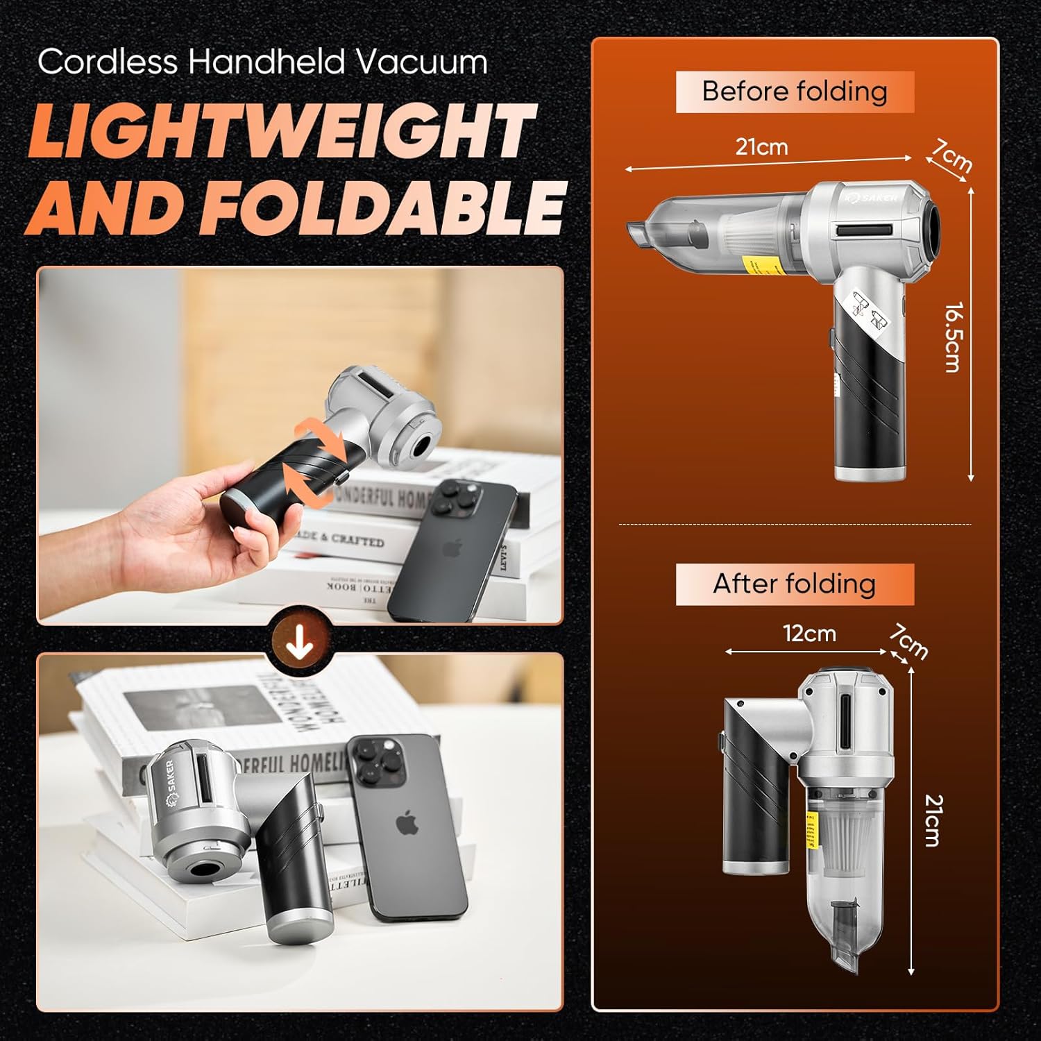 Saker Portable Handheld Vacuum Cordless Portable 17000PA Foldable Car Vacuum Cleaner Mini Dust Blower with Brushless Motor, Office Pet and Home Cleaning HL133