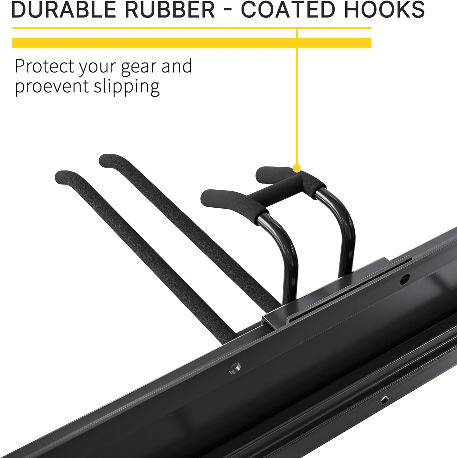 - 【Multi-Function Storage Rack】 Perfect wall mount garage tool organizer storage system, superb organization for garden tools, brooms , hoses , Yard Tools , pole cutters , hockey sticks , ski gears and more.