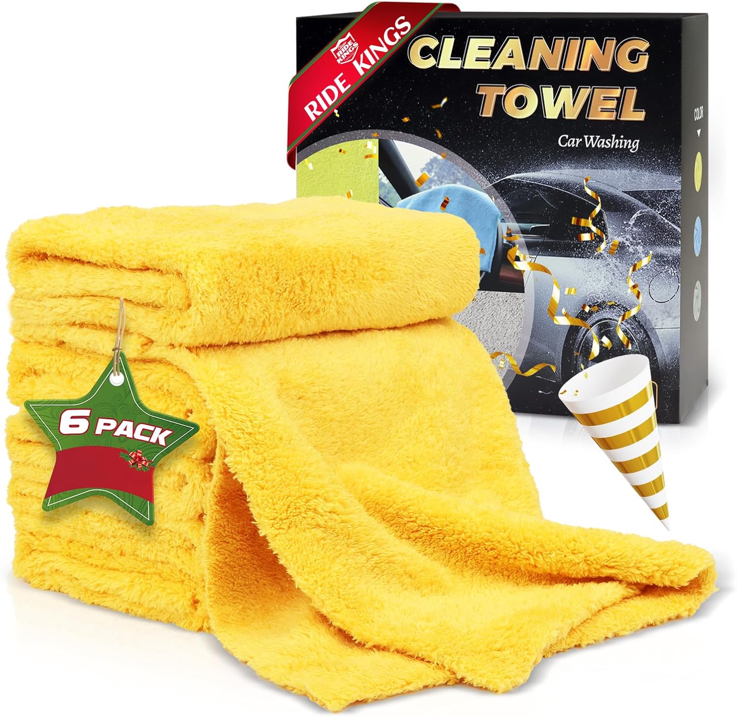 Micro Fiber Towels Car,Coral Fleece Car Wash Cleaning Towel,Endless,Absorbent, Scratch Free,No Lint, Extra Soft,Reusable and Durable,Interior Microfiber Rags 16in x 16in-6 Packs Yellow