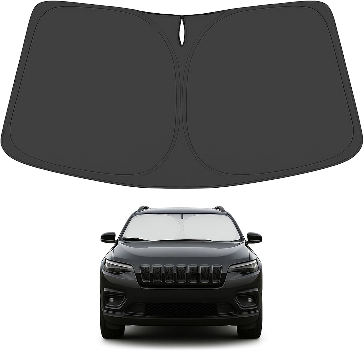 - Certified Sustainable. DESIGNED IN USA!!! Custom Design: The front windshield shade has been custom cut specifically for Jeep Cherokee (Not for Jeep Grand Cherokee). Precise fit design and Reinforced steel rings make a precise and secure fit to the window, no need to use suction cups to hold it in place. It won't sag or collapse like other car heat shields. Fits for Jeep Cherokee 2025 2024 2023 2022 2021 2020 2019 2018 2017 2016 2015 2014(Not for Jeep Grand Cherokee).