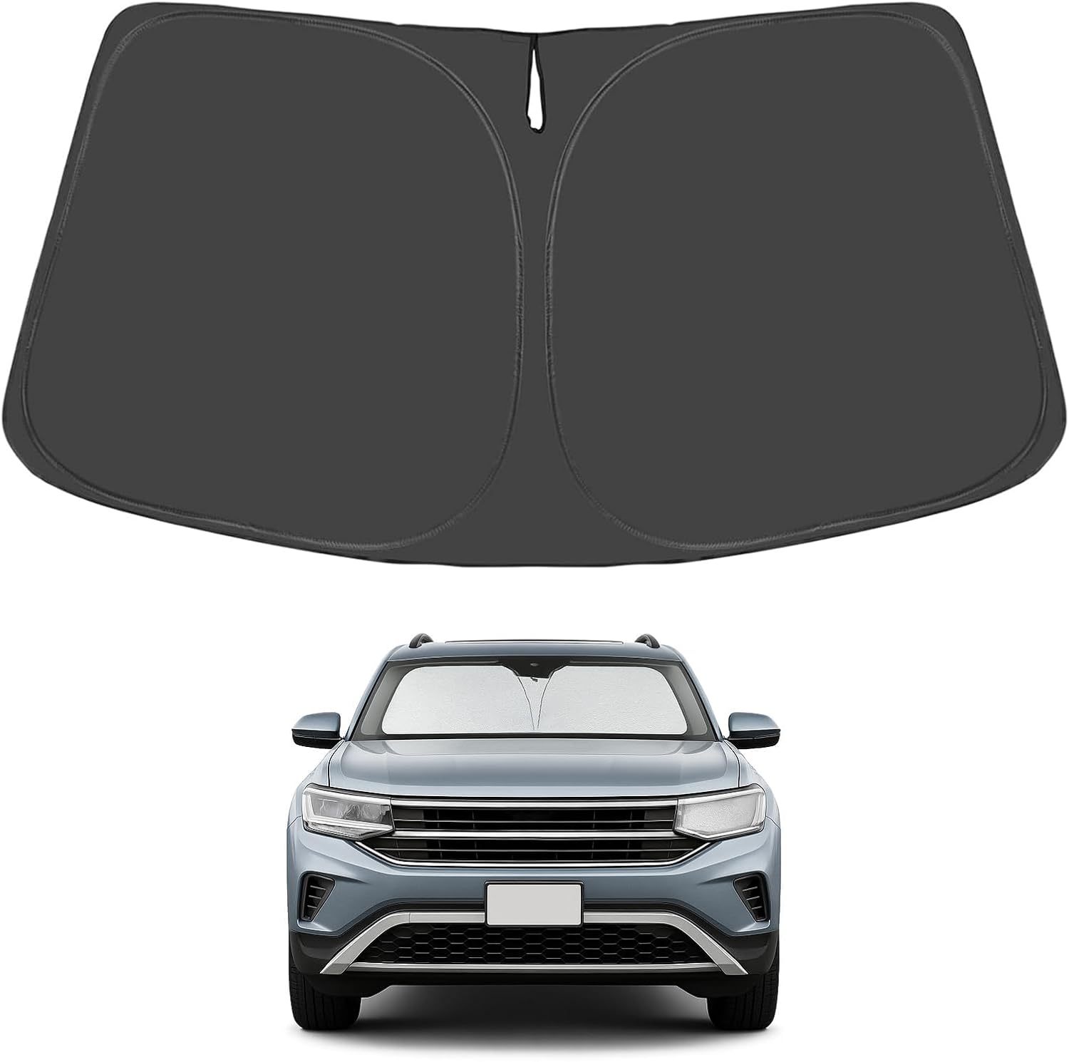 - Certified Sustainable. DESIGNED IN USA!!! Custom Design: The front windshield shade has been custom cut specifically for Volkswagen Atlas. Precise fit design and Reinforced steel rings make a precise and secure fit to the window, no need to use suction cups to hold it in place. It won't sag or collapse like other car heat shields. Fits for Volkswagen Atlas 2025 2024 2023 2022 2021 2020 2019 2018.