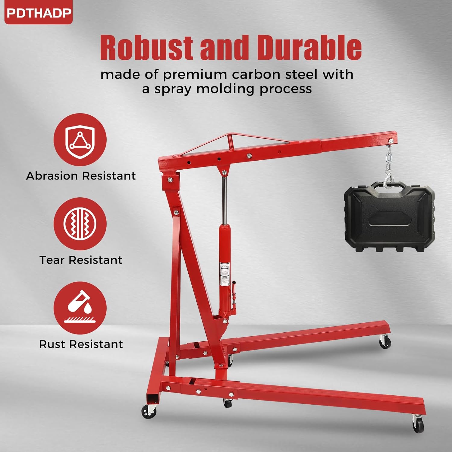 - 💯BUILD TO LAST:Thick carbon steel and Argon arc welding and spraying plastic processes make this folding engine hoist hard and resistant to rust, and wear, so you can use it indoors and outdoors with confidence.