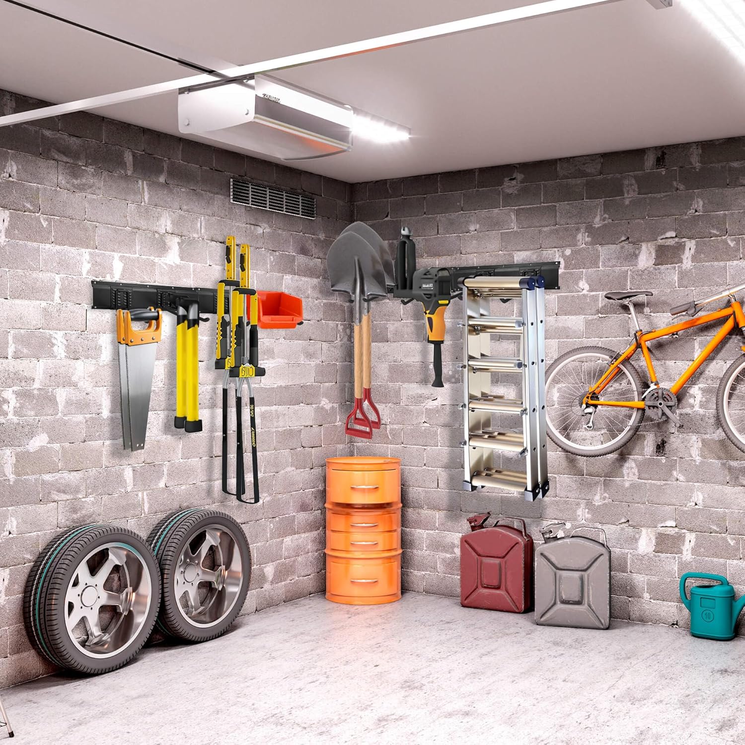 - ๐๐ข๐๐๐ฅ๐ฒ ๐๐ฌ๐๐ - Can be used to organize various tools such as shovels, leaf rakes, brooms, cords, blowers, folding chairs, pole cutters, hockey sticks, ski gear, and more.