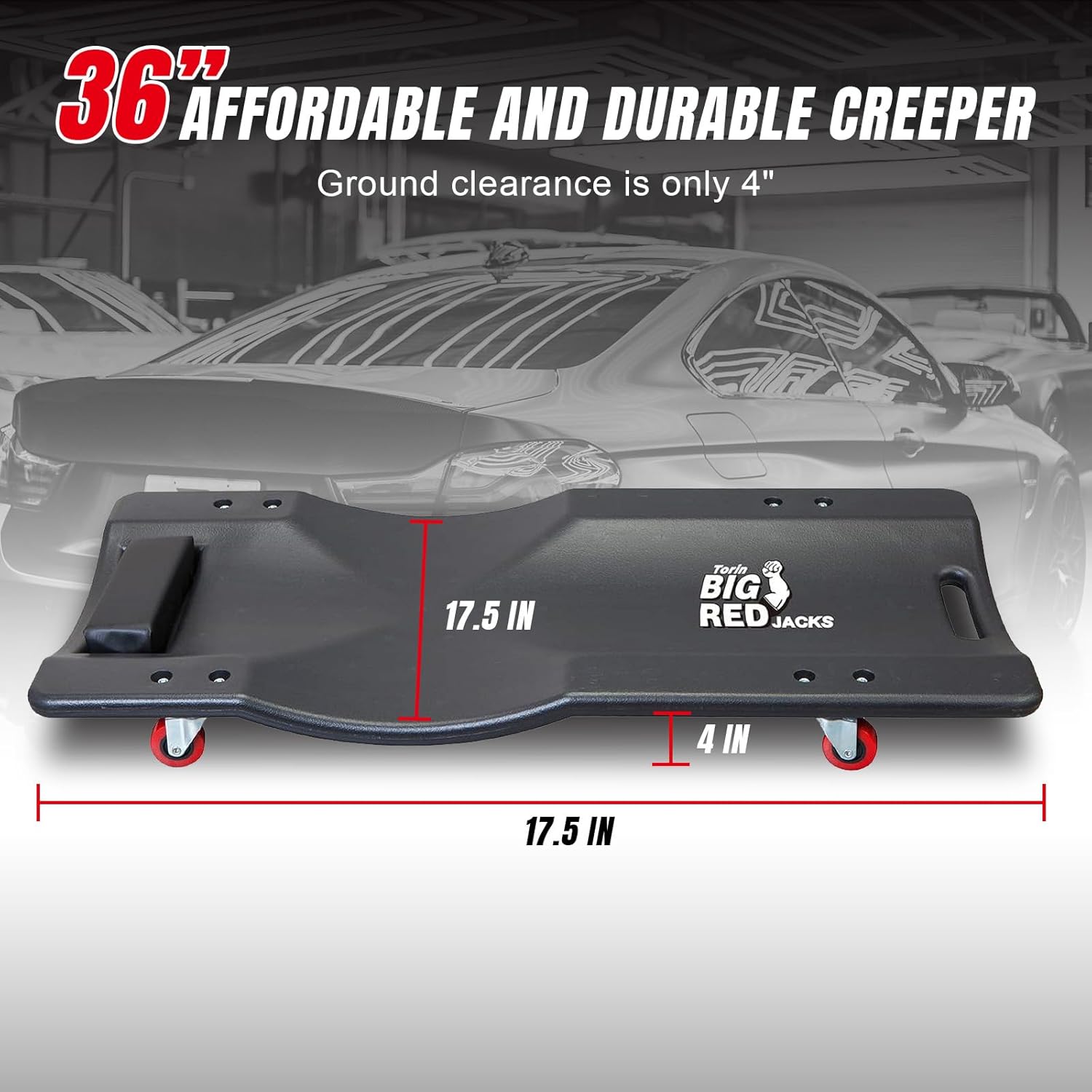 BIG RED Torin 36" Rolling Garage Creeper, Shop Creeper Blow Molded Plastic Mechanic Cart with Padded Headrest with 4 Casters, 350 LBS, Black