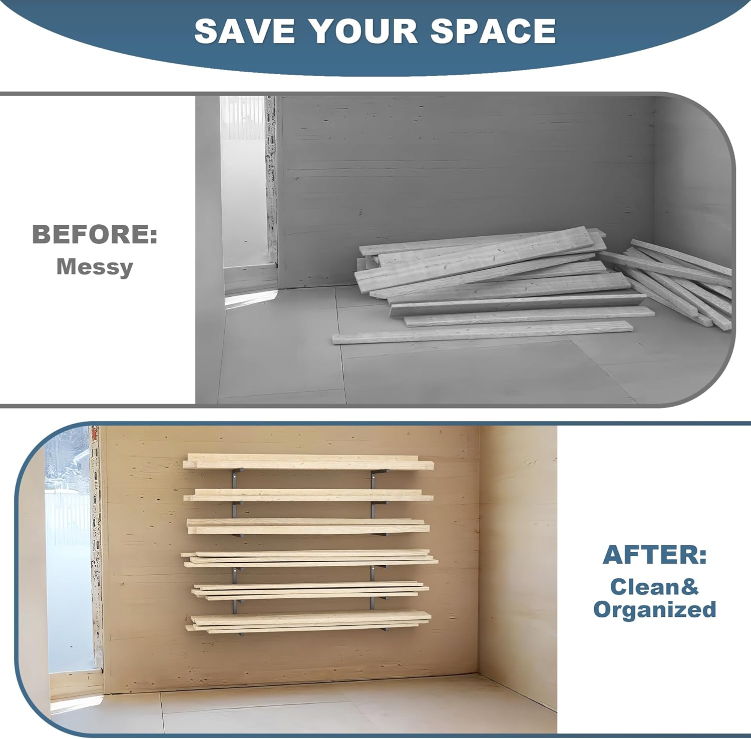 - Perfect Storage Rack - Ideal for garages, basements, sheds, workshops, this lumber organizer rack is perfect for organizing not only lumber but also shelving, firewood, side panels, flooring, pipes, and even hanging various tools and ladders.