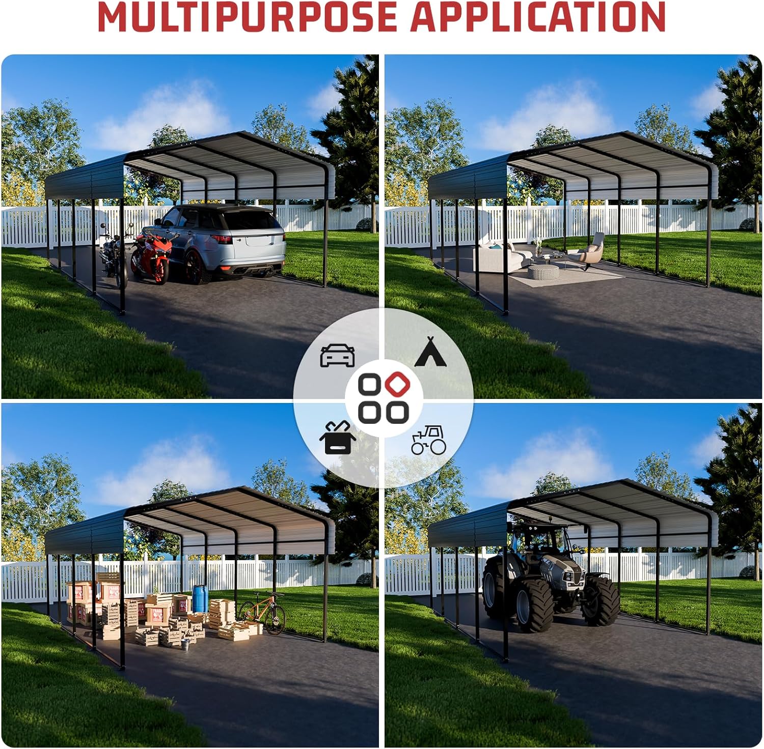 Metal Carport 13 x 20 FT with Heavy Duty Frame & Galvanized Steel Roof, Metal Car Garage, Sturdy Canopy Shelter for Car, Truck, Pickup, SUV, Tractor, and Boat