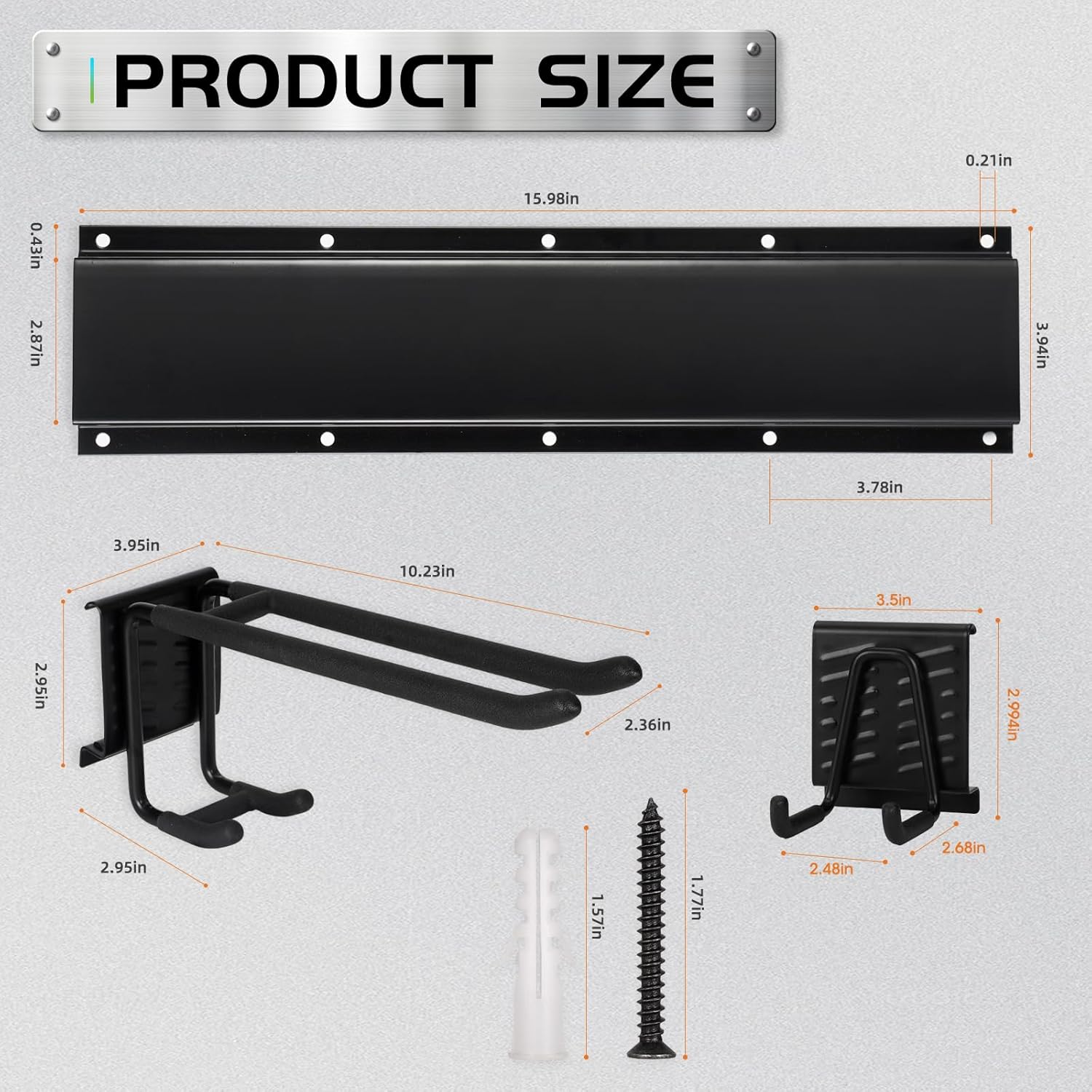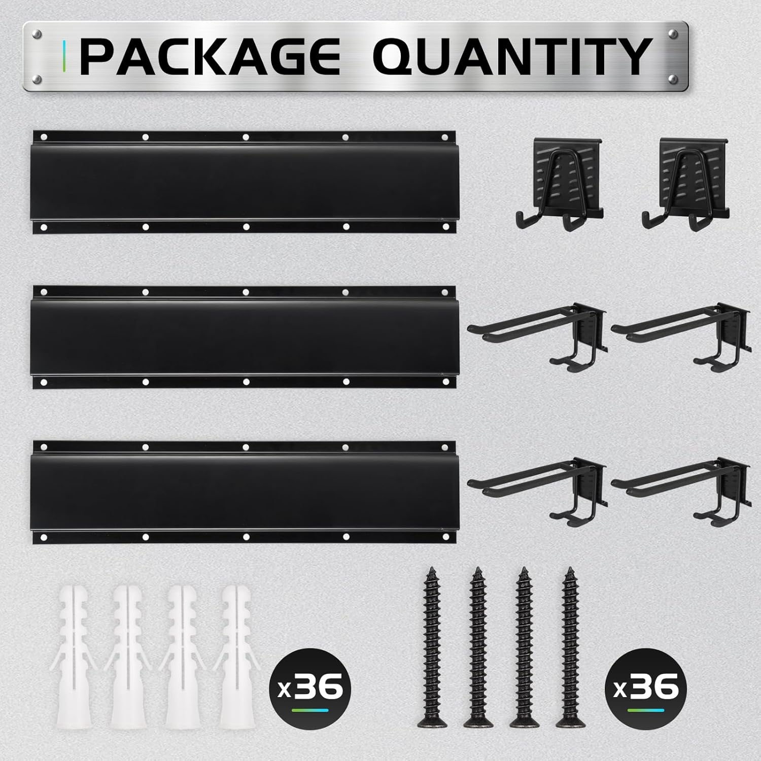 - 【Package Includes】3*Steel Plates, 6*Adjustable Hooks (4*Double Hooks, 2*Square Hooks), 36 Pairs Screws. Our garden tool storage for all your storage needs.