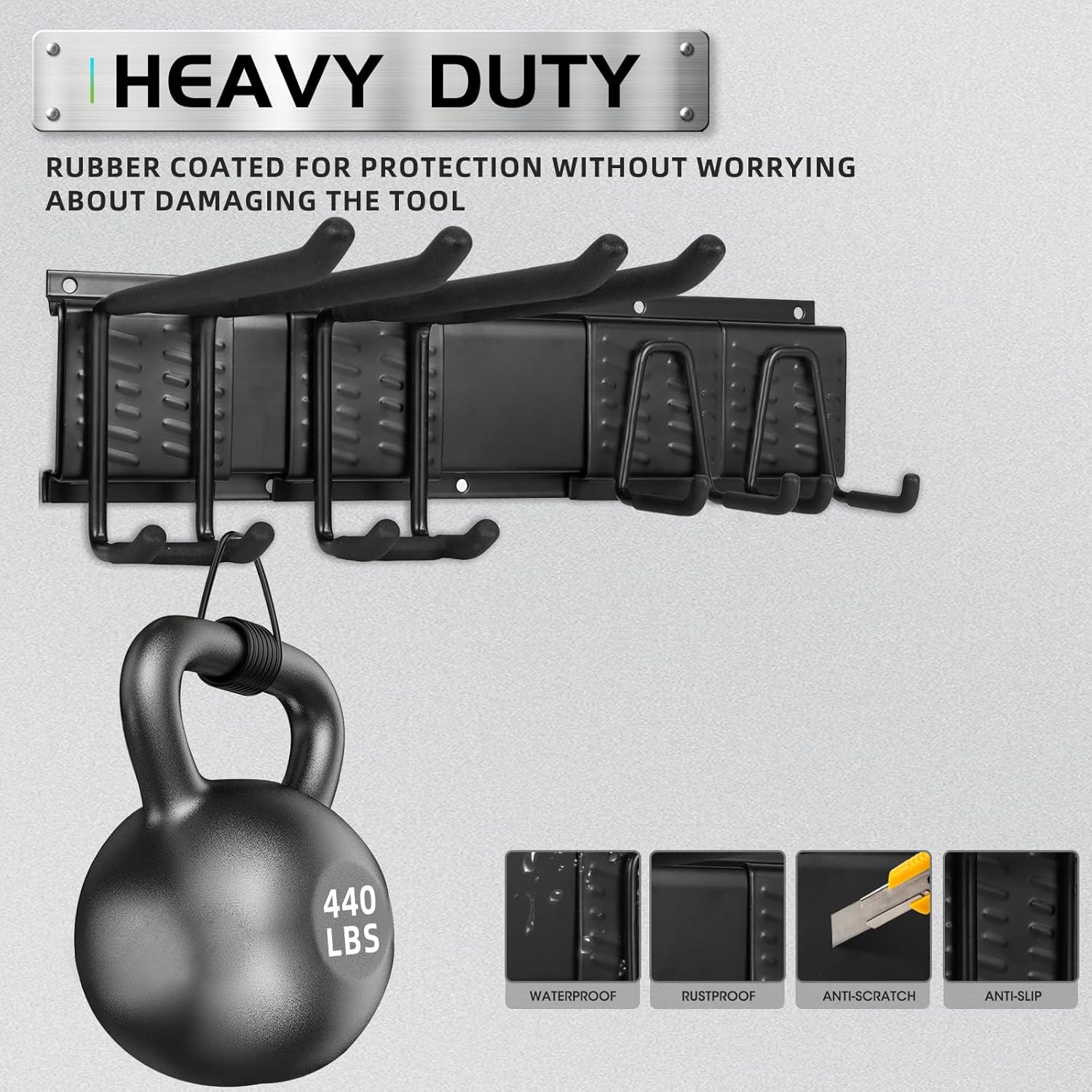 - 【CAREFUL DESIGN】The hooks are rubber coated for anti-slip, rustproof and anti-scratch, the garage organization can be used both indoors and outdoors.