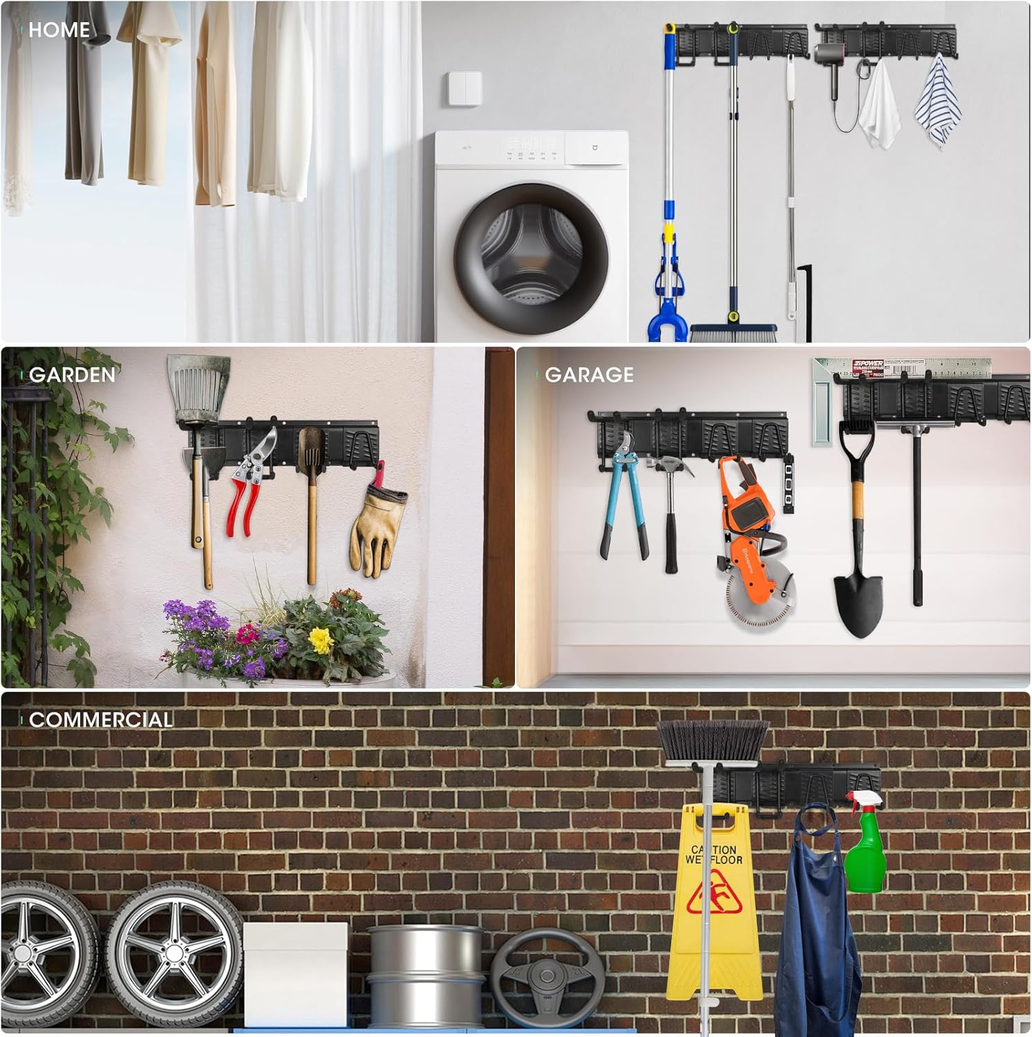 - 【EASY INSTALLATION】 Hooks of yard tool organizer for garage can be disassembled again and again, no need to assemble, just mark where you want to mount it, keep it level, mount the garage organizer wall mount to the wall with anchors and screws and use it.