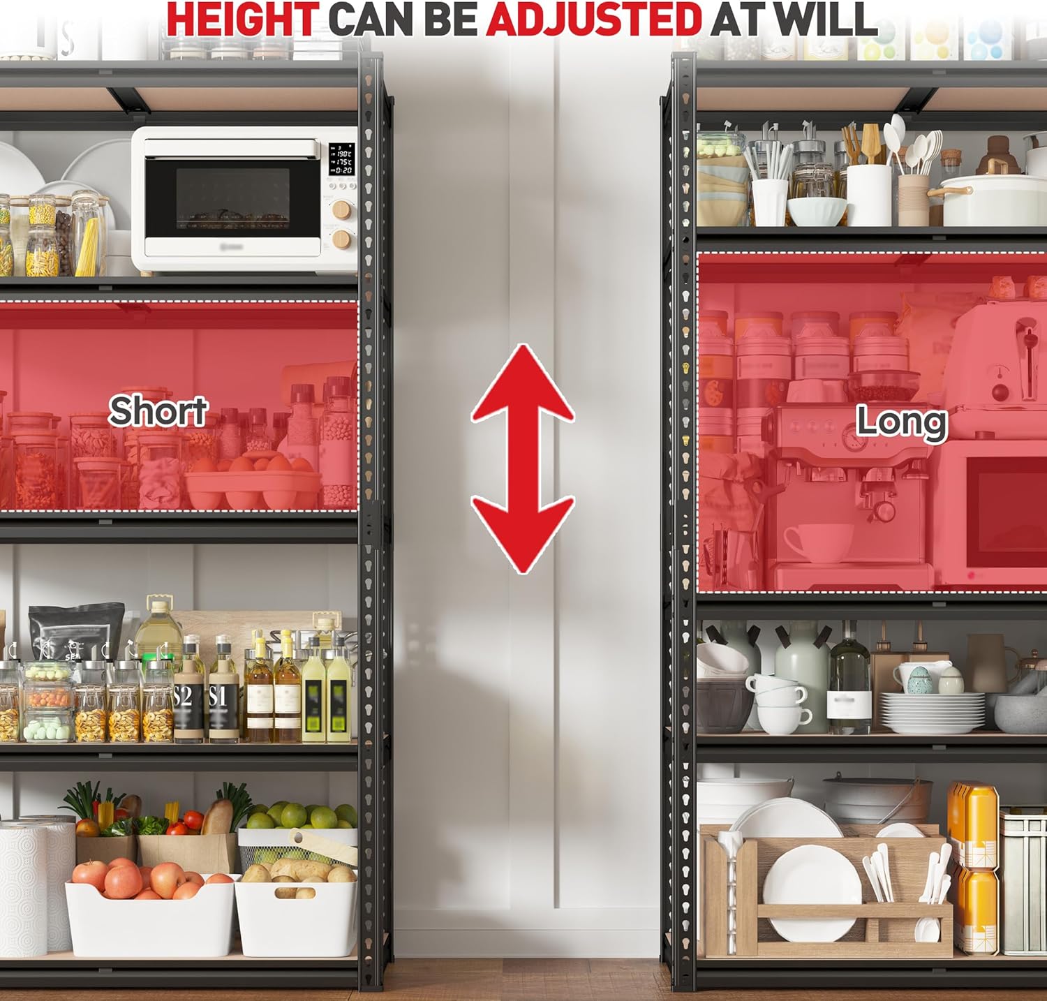 - 【72"H x 35.55"W x 16"D Multipurpose Storage Shelves】These heavy duty shelving units are suitable for garage, pantry, closet, kitchen, warehouse, basement, living room, office, and commercial spaces. The 5-tier design helps organize and maximize your storage space