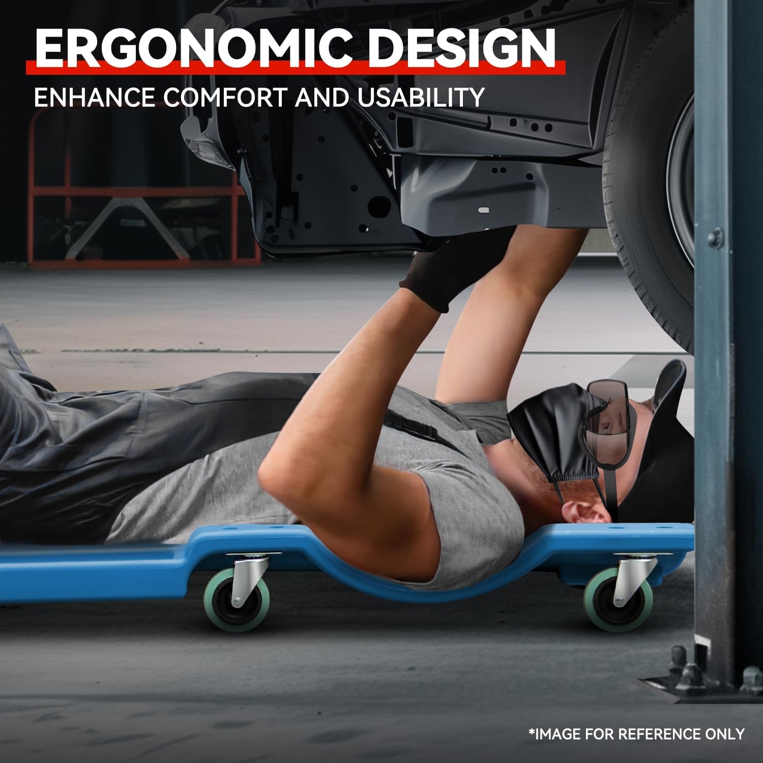 Auto Dynasty 40 Inches Mechanic Creeper, Automotive Garage Repair Low Profile Under Car Rolling Creeper with Padded Headrest, Plastic, Blue