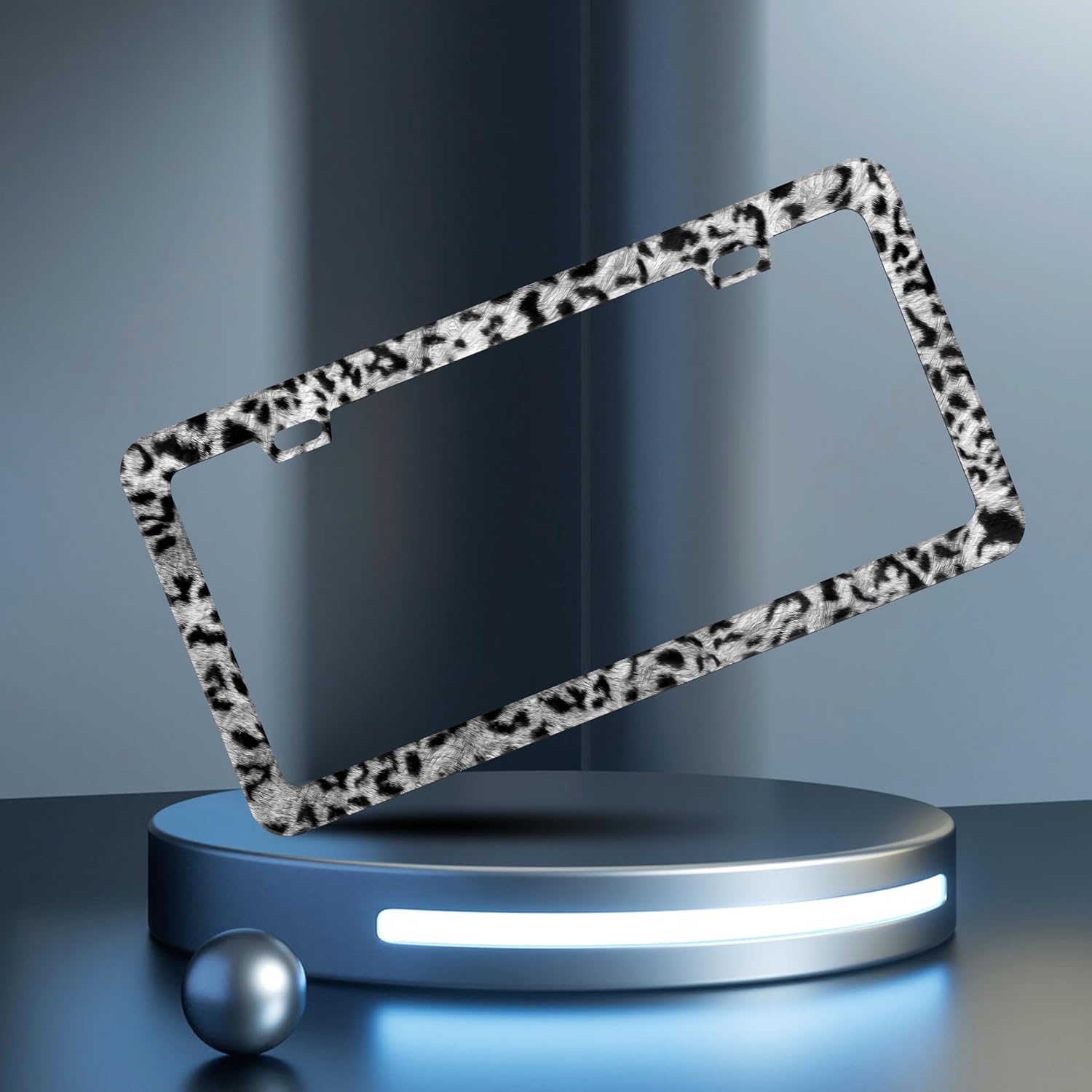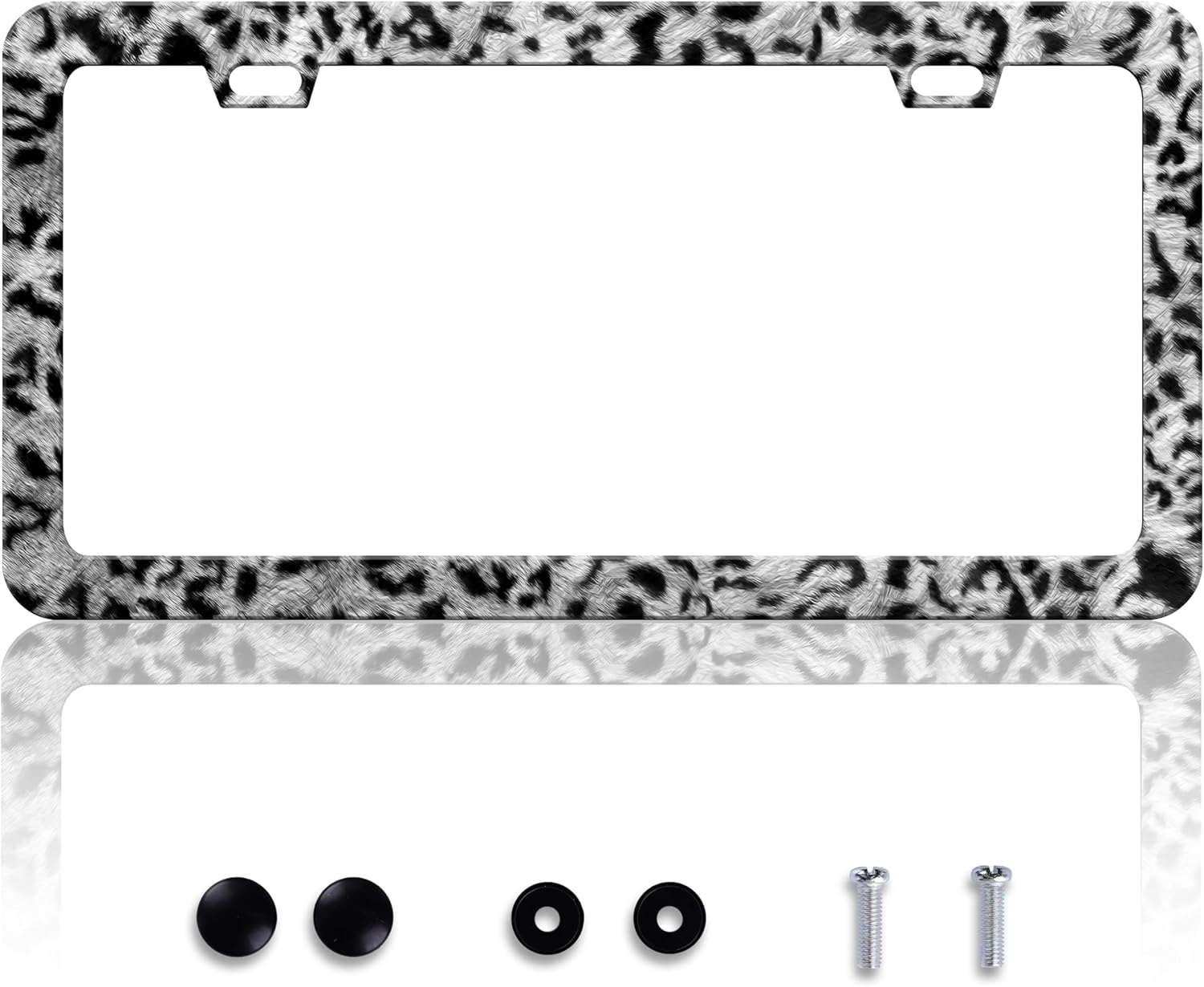Grey Black Leopard Print License Plate Frame Cheetah License Plate Frames Personalise Stainless Steel Funny Design Compatible with Standard License Plate Holder for USA Canada 6 X 12 Inch with Screws