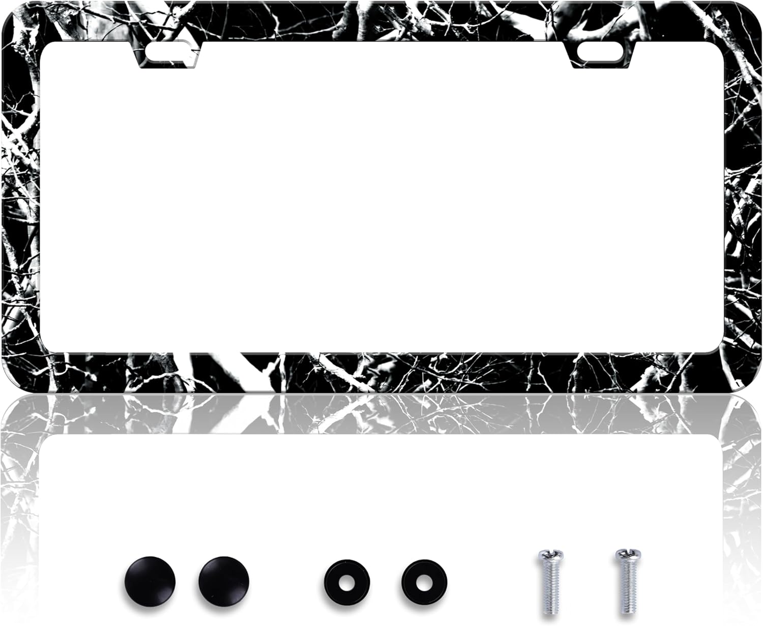 Black White Camouflage License Plate Frame Branches Trunks Camo License Plate Frames Personalise Stainless Steel Funny Design Compatible with Standard Holder for USA Canada 6 X 12 Inch with Screws