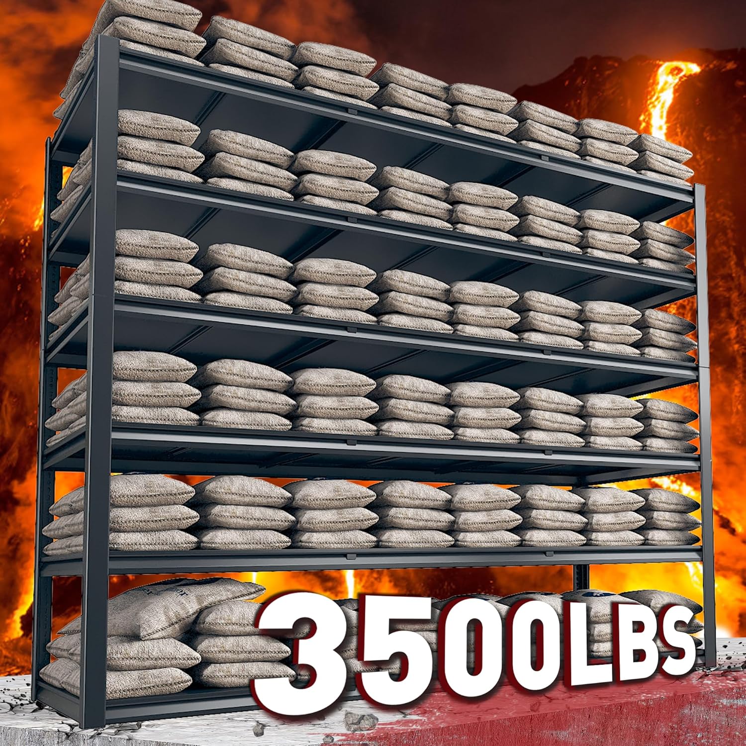 - 【3500 LBS Capacity Storage Shelves Heavy Duty】REIBII metal shelving is made of premium steel with double thickened partitions and each sturdy shelf can hold up to 580 LBS . The storage shelving construction as a whole is capable of supporting up to 3500LBS, and the thickened metal posts and beams provide greater support to avoid heavy-duty warping and bending of this 6 tier storage shelving. Heavy duty shelving is a very handy storage tool to keep your space clean and tidy