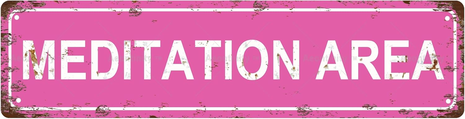 MEDITATION AREA Non-Embossed Vintage Metal Tin Street Sign Bar Cafe Garage Cave Home Room Wall Bathroom Farmhouse Garden Porch Patio Decor, 16 x 4 Inch