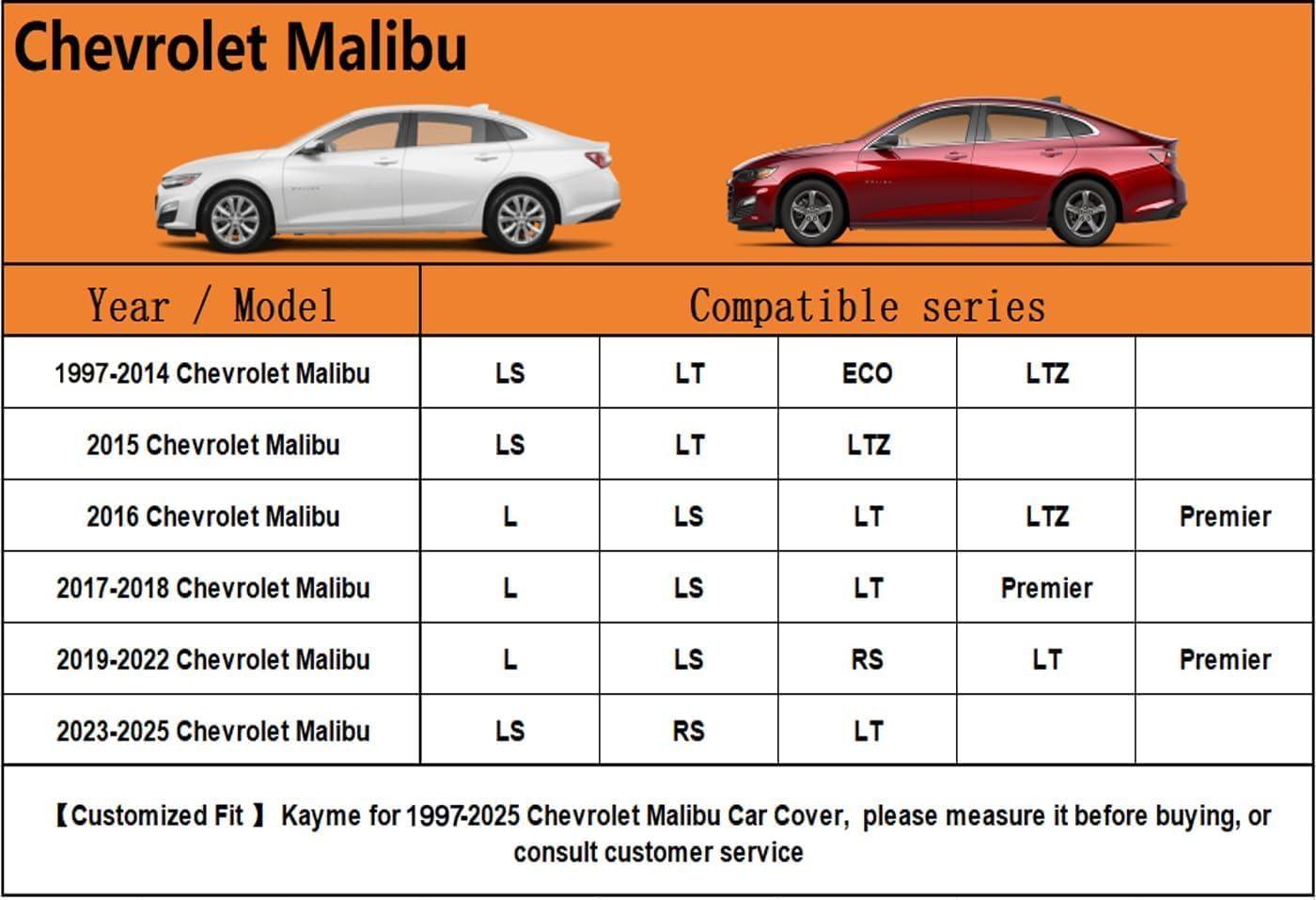 - ăSuitable forăâ Custom fit for Chevrolet Chevy Malibu (1997-2025) Come with a large enough portable bag to store your cover when you do not use.
