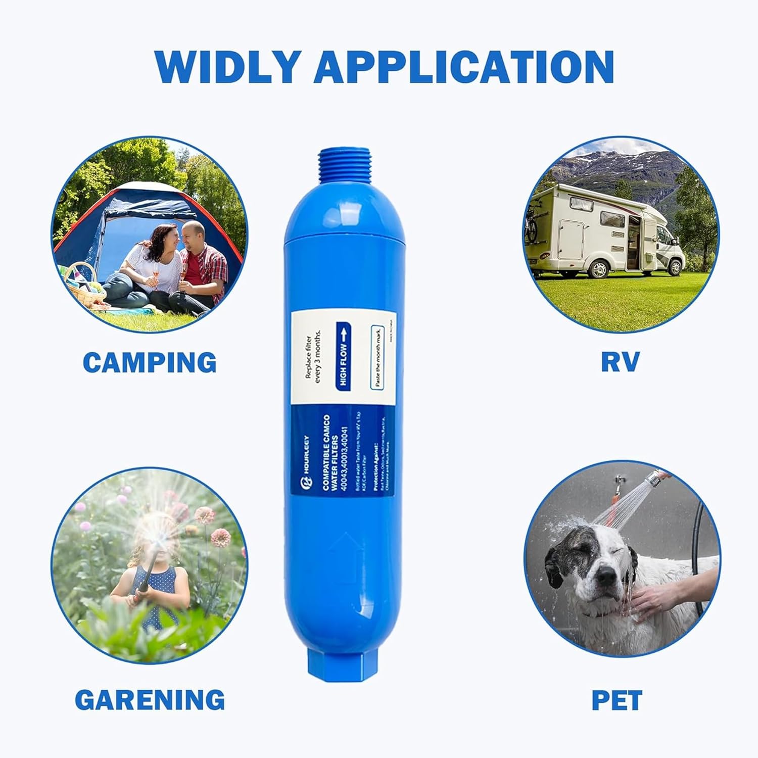Hourleey 2 Pack RV Inline Water Filter, Reduce Bad Taste, Odors, Rust, Fluoride, Chlorine and Sediment in Drinking Water, Dedicated for RVs Campers