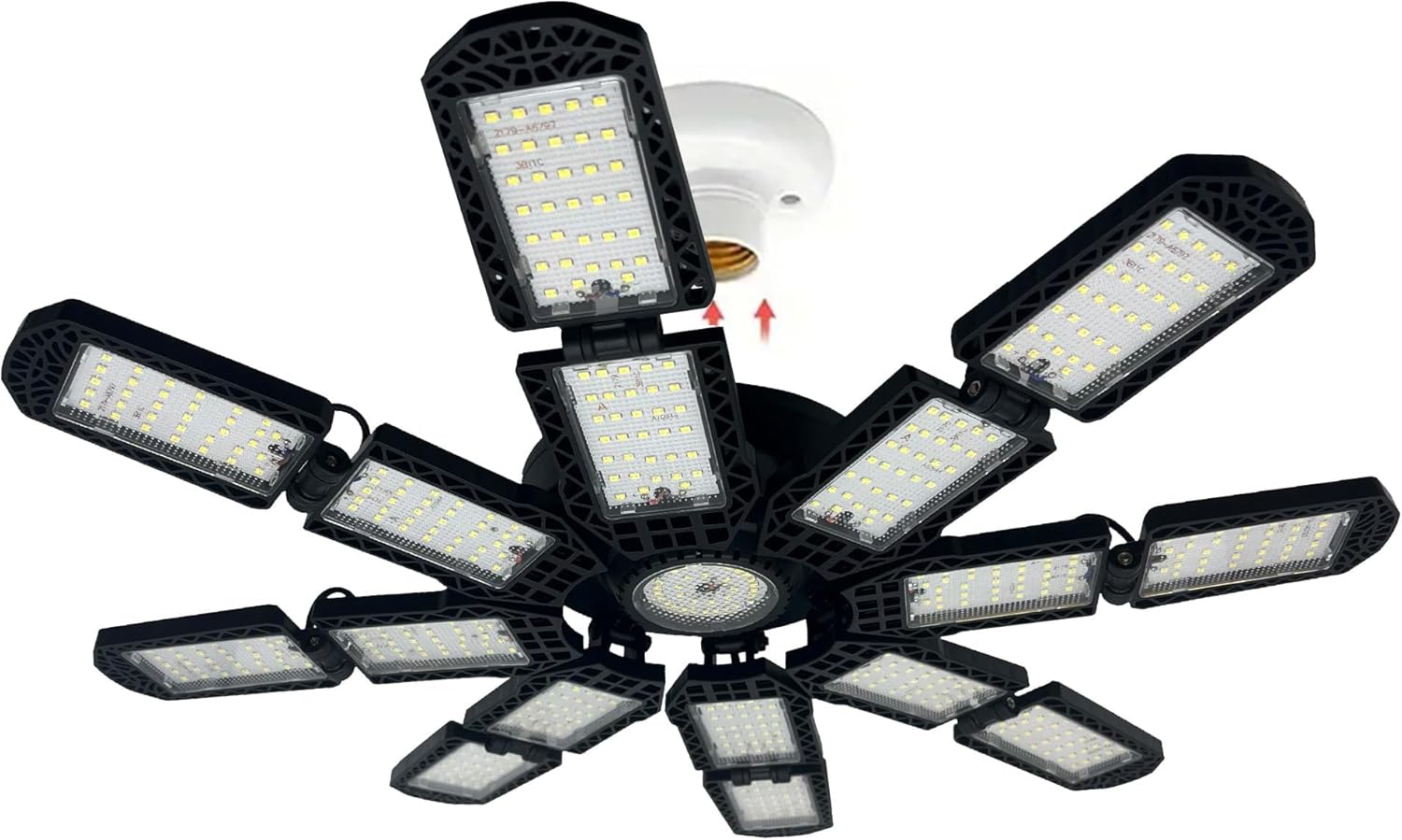 LED Garage Light,Super Bright Screw in E26/E27 Ceiling Shop Work Lamp, 350W 35000 Lumen Deformable Basement Bulb Fixture with 16+1 Adjustable Panels, Lighting for Workshop, Attic