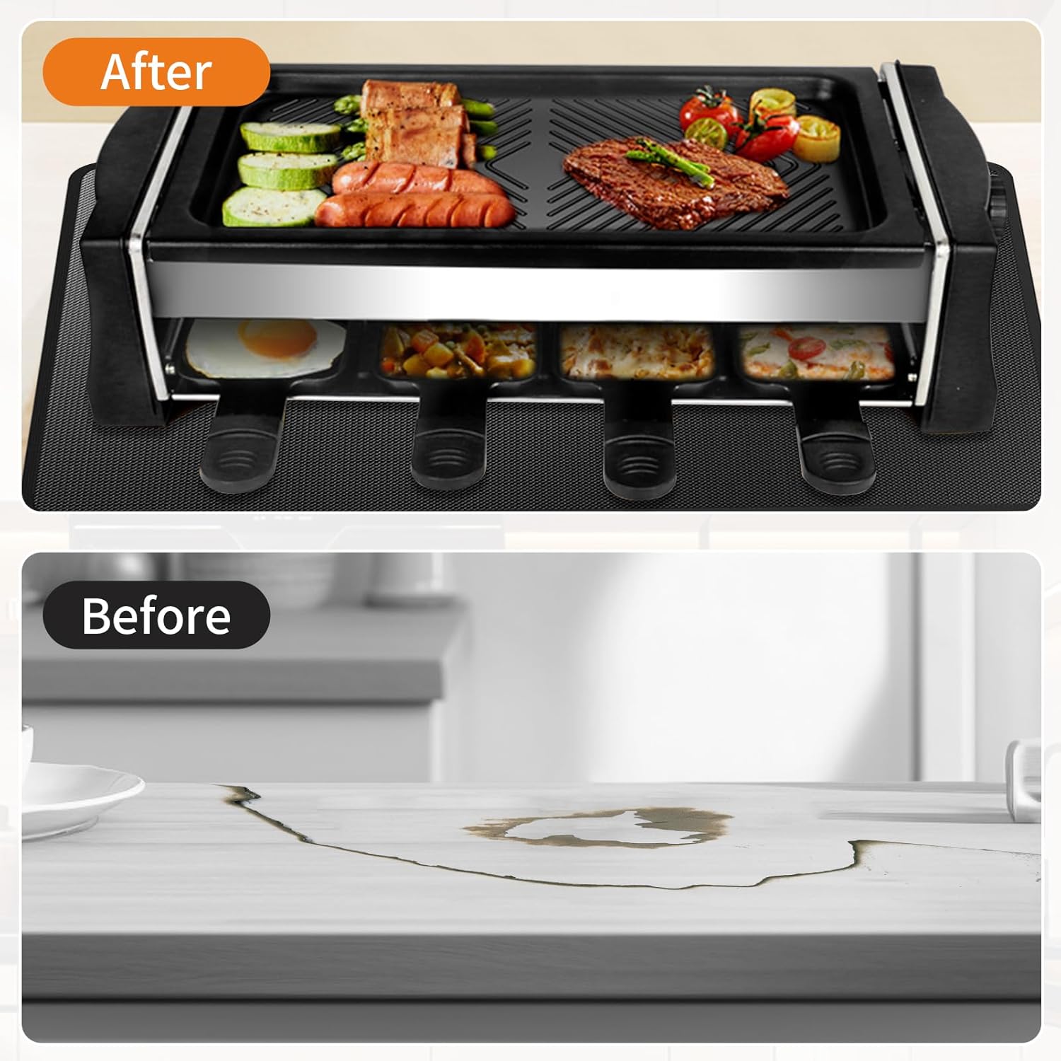 - SURFACE PROTECTION: guards tables against scratches burns grease splashes and food spills while maintaining stability of cooking equipment