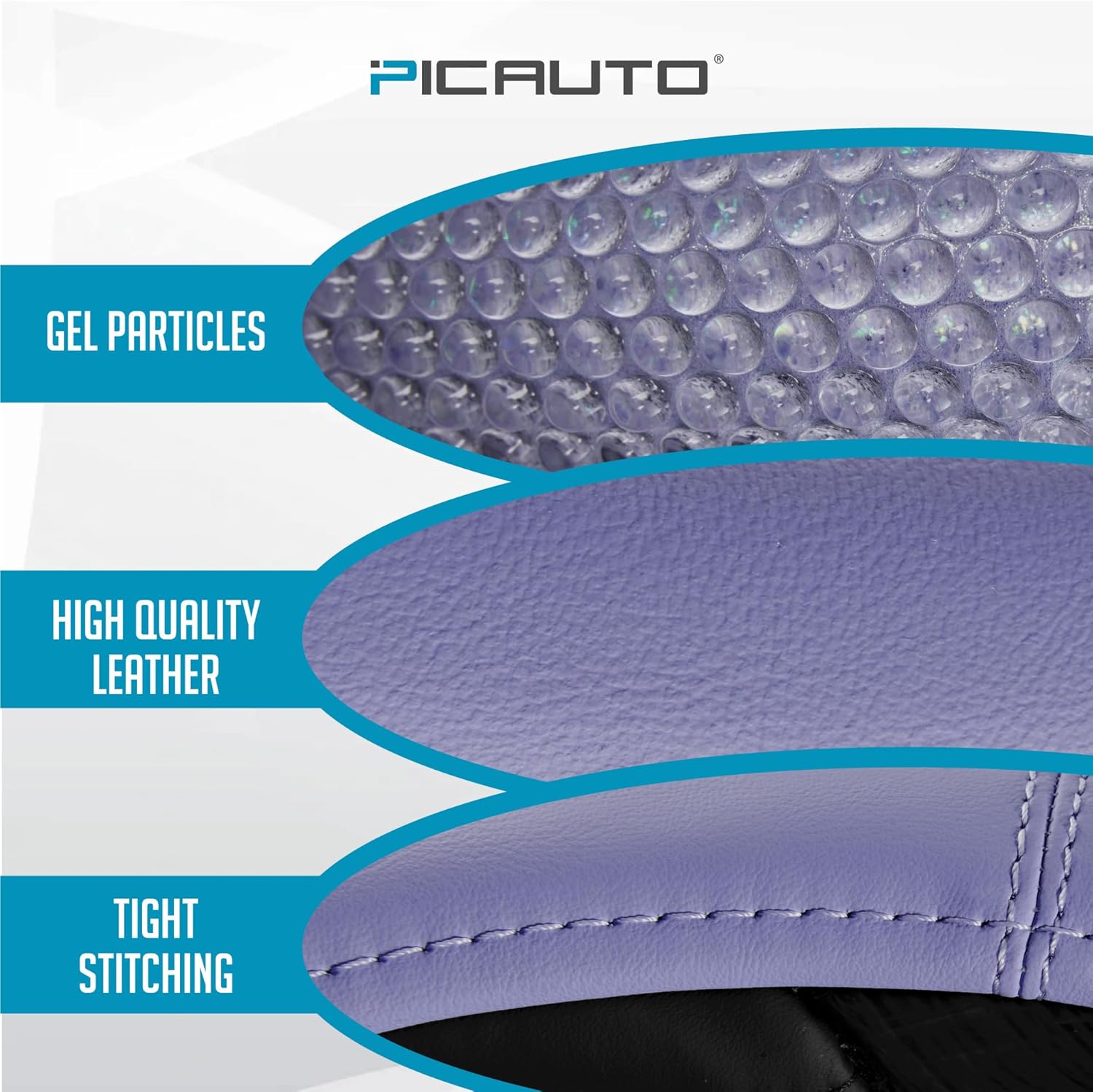 PIC AUTO Gel Particles Steering Wheel Cover, Purple Luxury Leather Car Steering Wheel Protector, Universal Fit 14.5"-15.5" Anti-Slip Car Interior Accessories for Girls & Women