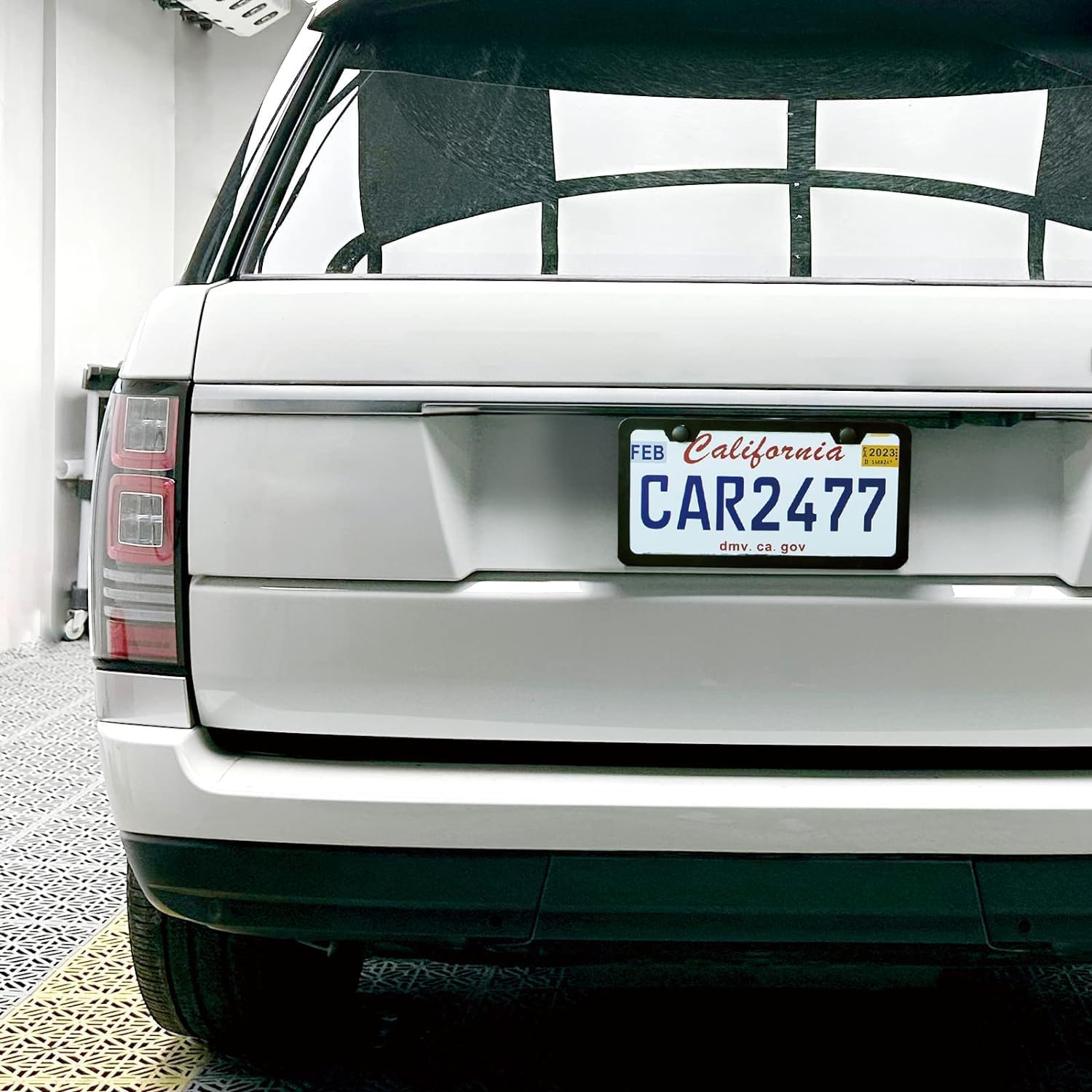 - Universal Fit to U.S and CA standard :License Plate Frame Size 6-5/16" x 12-1/4",and New 2 Holes Slim Style Design License Plate Frame. Will Not Block State Tags. The sleek and modern appearance complements the aesthetics of your vehicle, adding a touch of sophistication