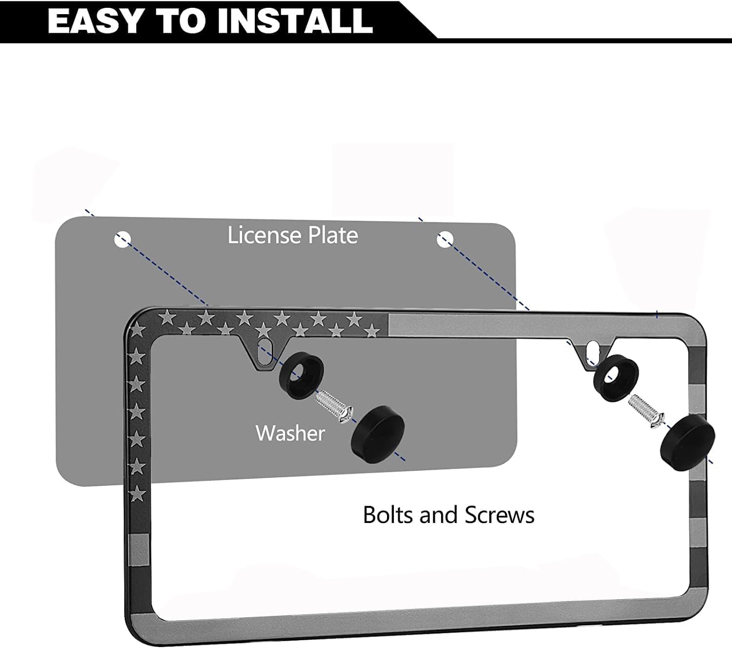 - Durable Construction: Matte Black Color.This license plate holder is crafted from high-quality materials(Premium Aluminum Alloy),which withstand the elements and daily wear and tear.(Rust-resistant,Water proof, Steam resistance)