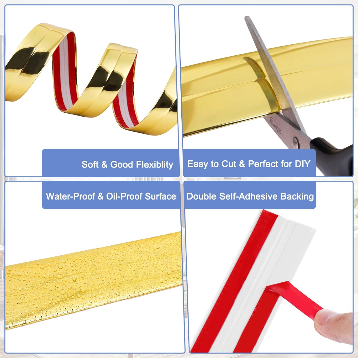 - 2.Premium Material: Crafted from high-quality material, our peel and stick corner trim boasts exceptional flexibility and wear resistance. Designed to withstand daily wear and tear, they maintain their pristine appearance over time.