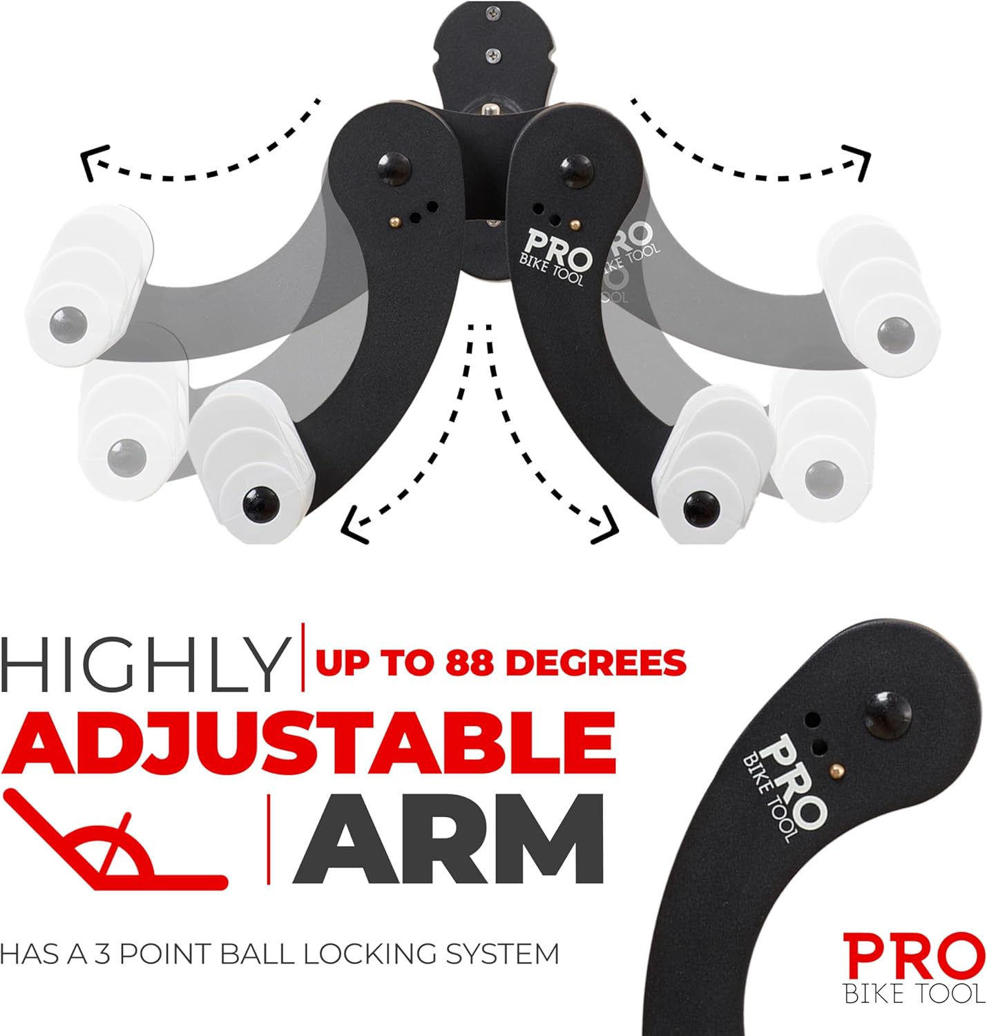 - Durable and Reliable: Sturdy steel wall mount bike rack with scratch-proof coating; ratchet gear system ensures dependable bike wall hanger; adjustable arm angles for different bike shapes and sizes