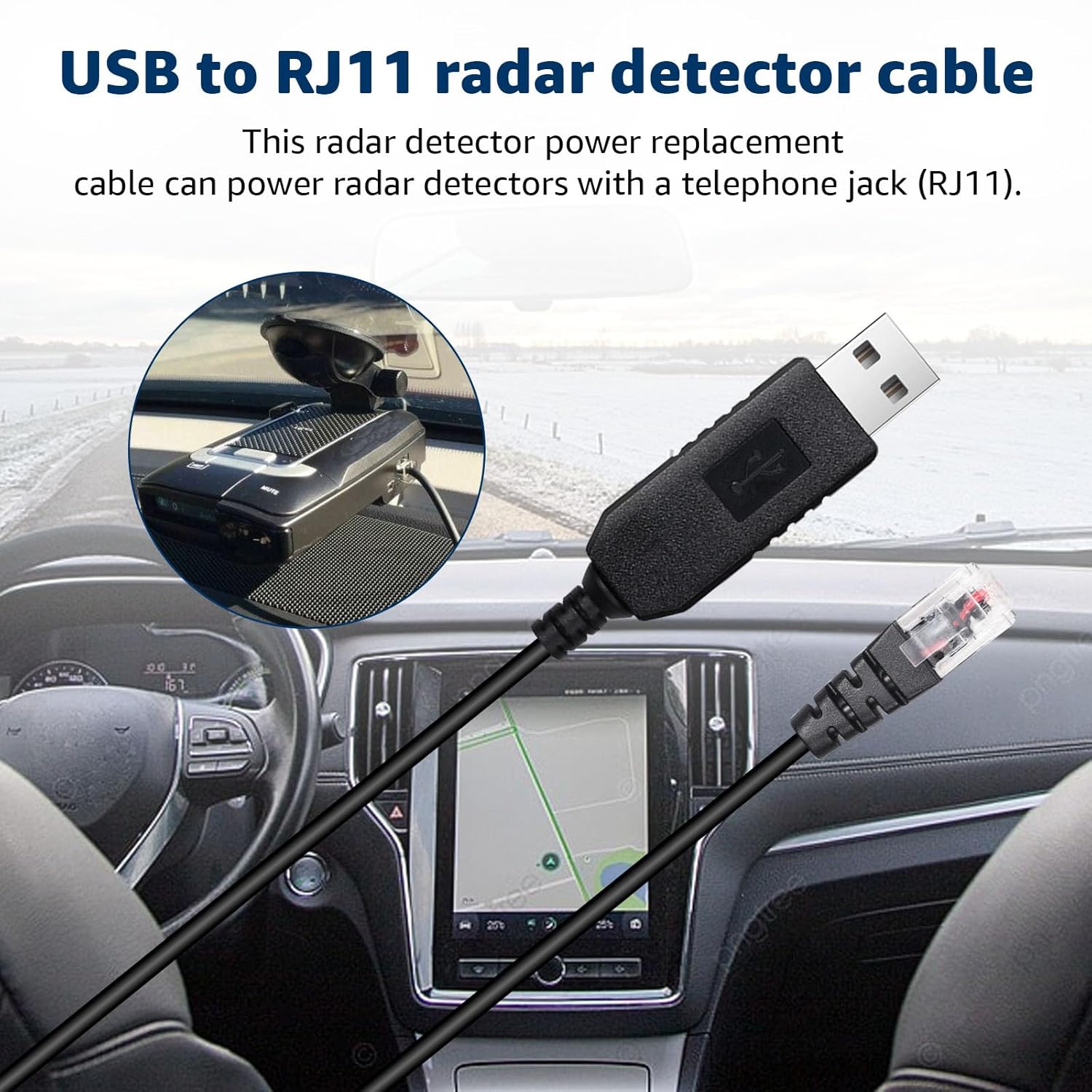 - Universal Compatibility for All Your Radar Detectors: Experience seamless connectivity with our premium USB-C to RJ11 and USB to RJ11 radar detector cables.Perfectly compatible with Uniden, Escort, Beltronics, Cobra, Radenso XP, and many more radar detectors featuring RJ11 jacks.Whether you're on the road or off-road, stay powered and protected with ease;