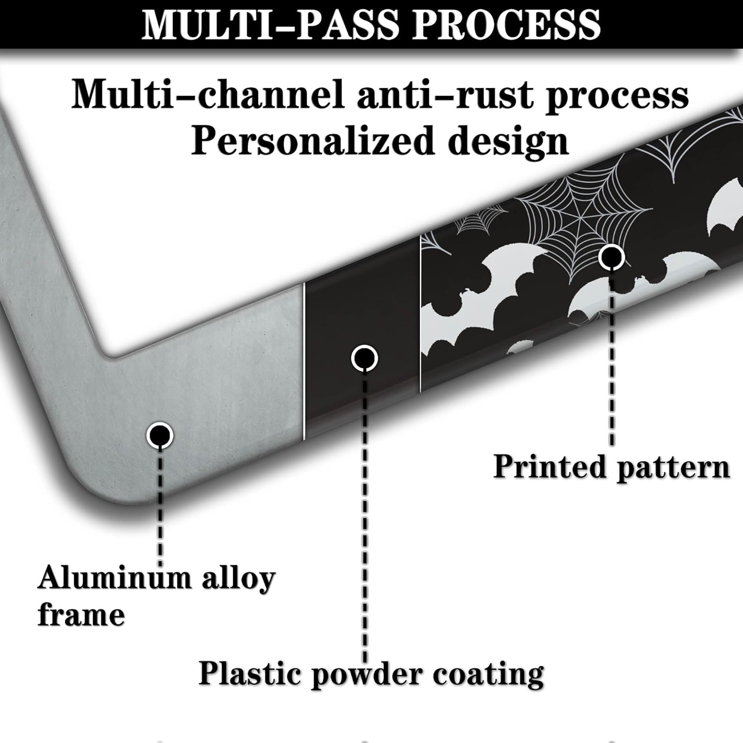 License Plate Frame Black and White License Plate Holder Spider Web Bat Universal Aluminum Car Accessory 2 Pack with Screw Covers Set
