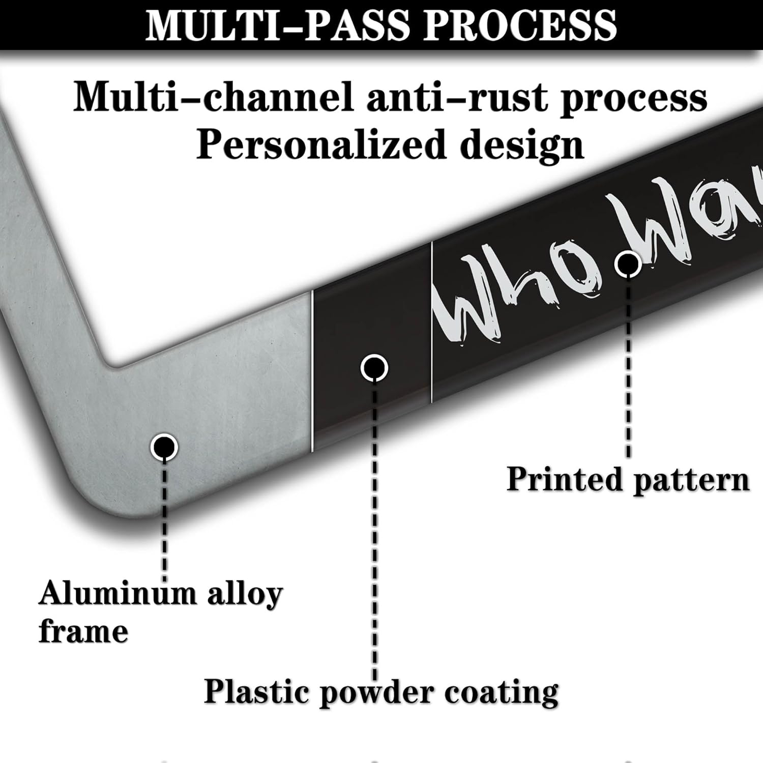 - FUNNY DESIGN: Featuring a unique and customized design, this license plate frame creates an eye-catching and bold statement for your vehicle. Not only does it add a touch of personality to your car, but it also makes for a great holiday gift, souvenir, or decorative piece for family, friends, and colleagues. Elevate your vehicle's style while sharing a laugh!
