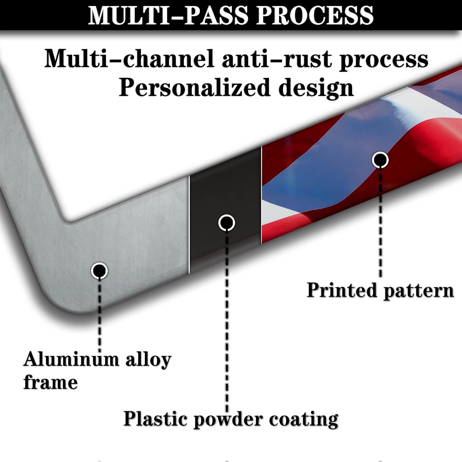 License Plate Frames for Men Multicolor Car Plate Frame for Women American Flag Aluminum Metal Car Accessory 2 Pack with Screw Covers Set