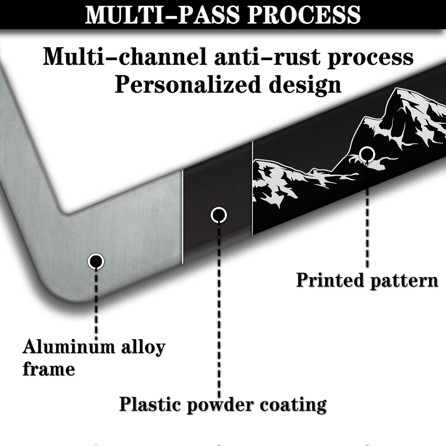 License Plate Frames for Men Black and White License Plate Frame for Women Mountains Aluminum Metal Car Accessory 2 Pack with Screw Covers Set