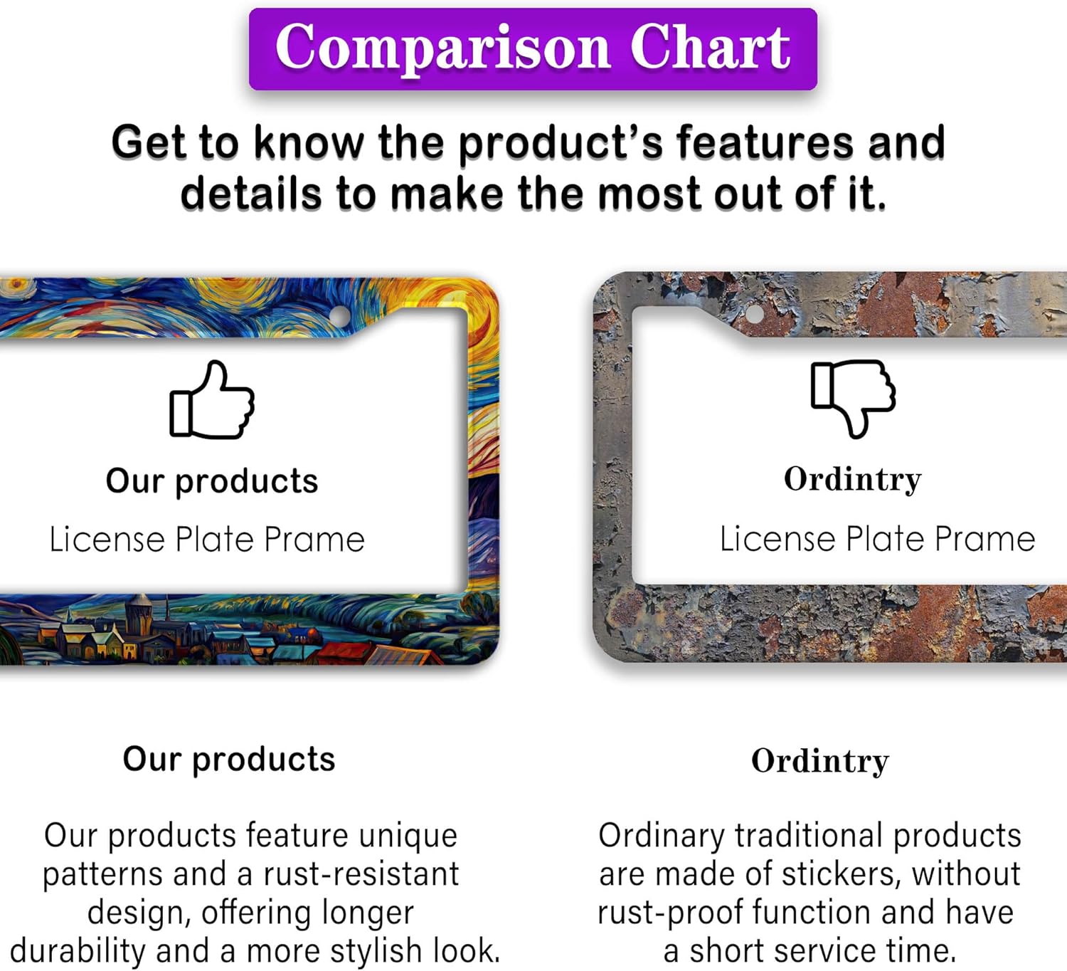 - FUNNY DESIGN: Featuring a unique and customized design, this license plate frame creates an eye-catching and bold statement for your vehicle. Not only does it add a touch of personality to your car, but it also makes for a great holiday gift, souvenir, or decorative piece for family, friends, and colleagues. Elevate your vehicle's style while sharing a laugh!