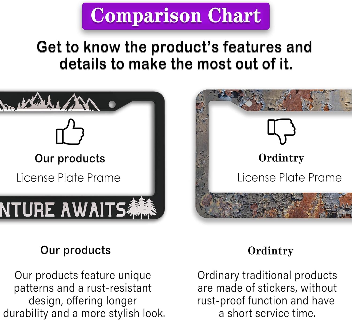 - FUNNY DESIGN: Featuring a unique and customized design, this license plate frame creates an eye-catching and bold statement for your vehicle. Not only does it add a touch of personality to your car, but it also makes for a great holiday gift, souvenir, or decorative piece for family, friends, and colleagues. Elevate your vehicle's style while sharing a laugh!
