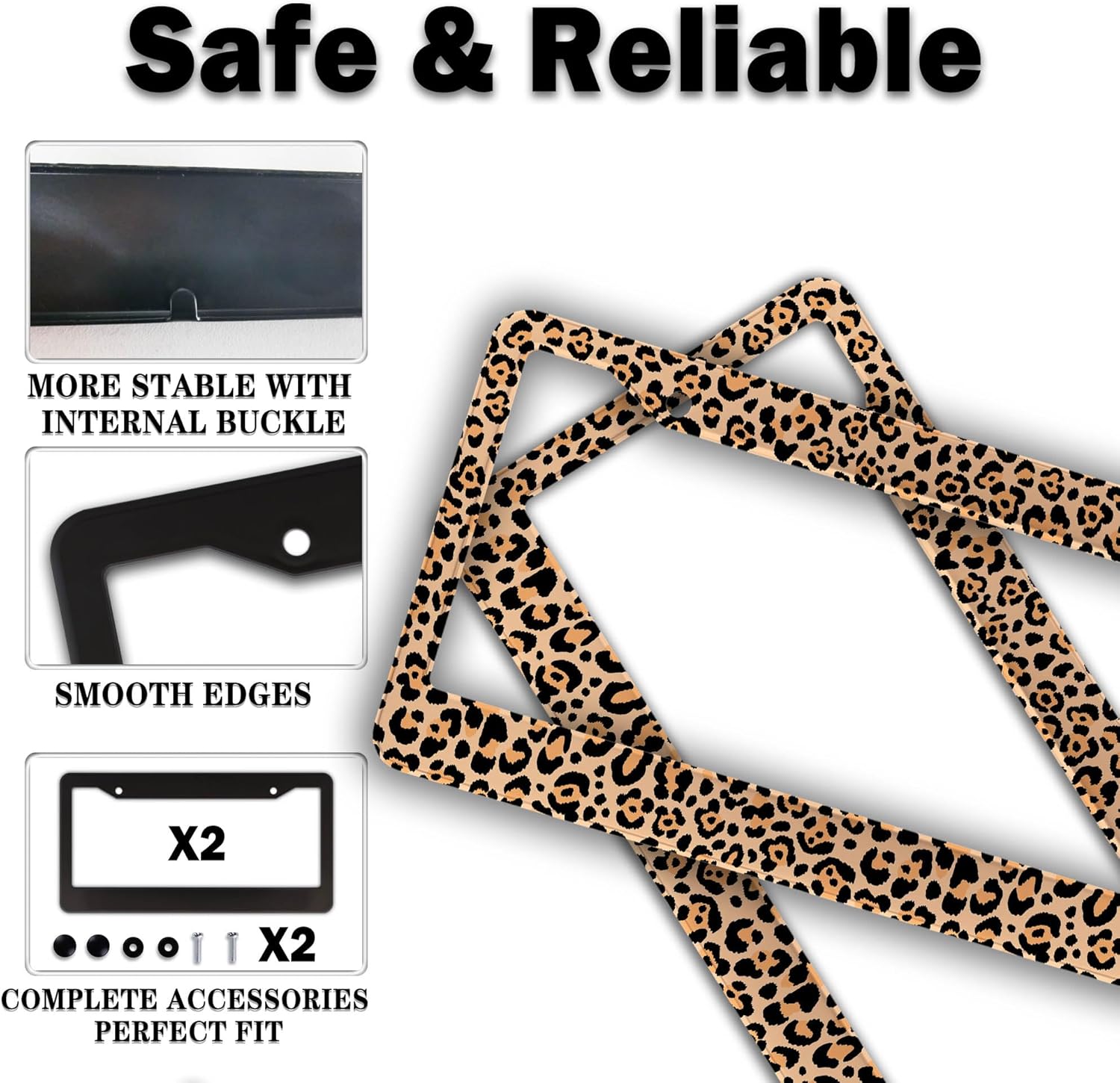 License Plate Frames Leopard Print Fun License Plate Frame Protector Cute Cheetah Texture Aluminum Metal Car Accessory 2 Pack with Screw Covers Set