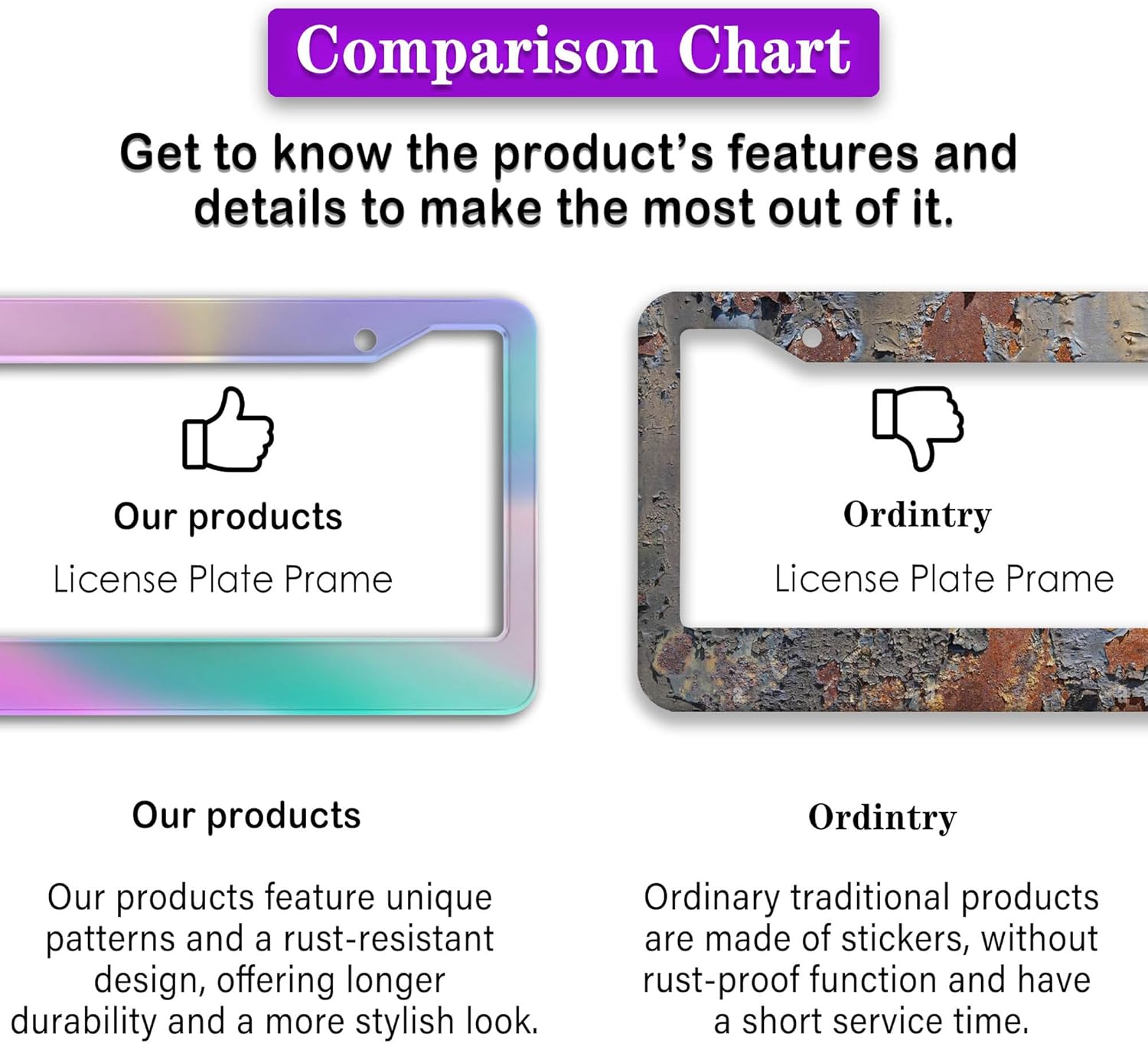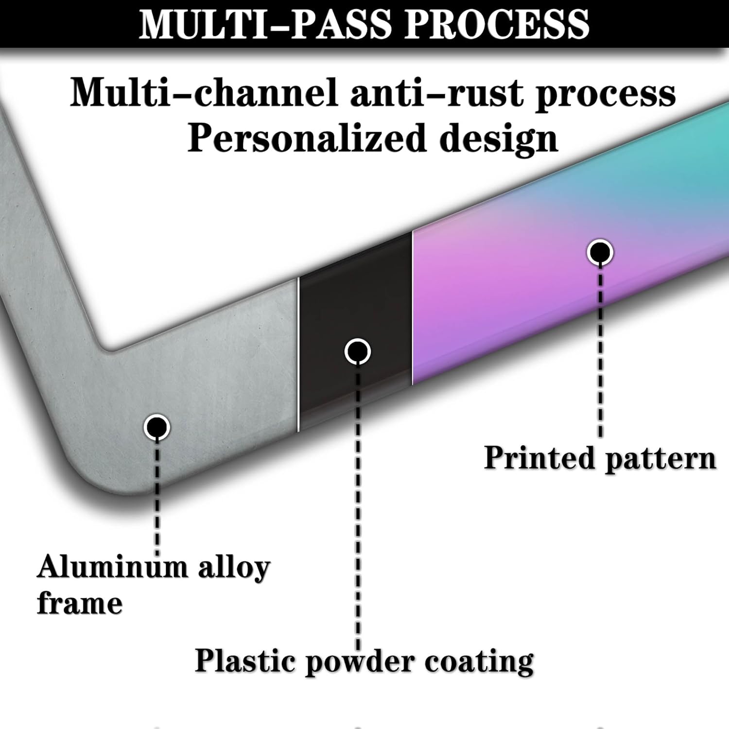 License Plate Frame Holder Rainbow License Plate Frames for Women Iridescent Women Universal Aluminum Car Accessory 2 Pack with Screw Covers Set