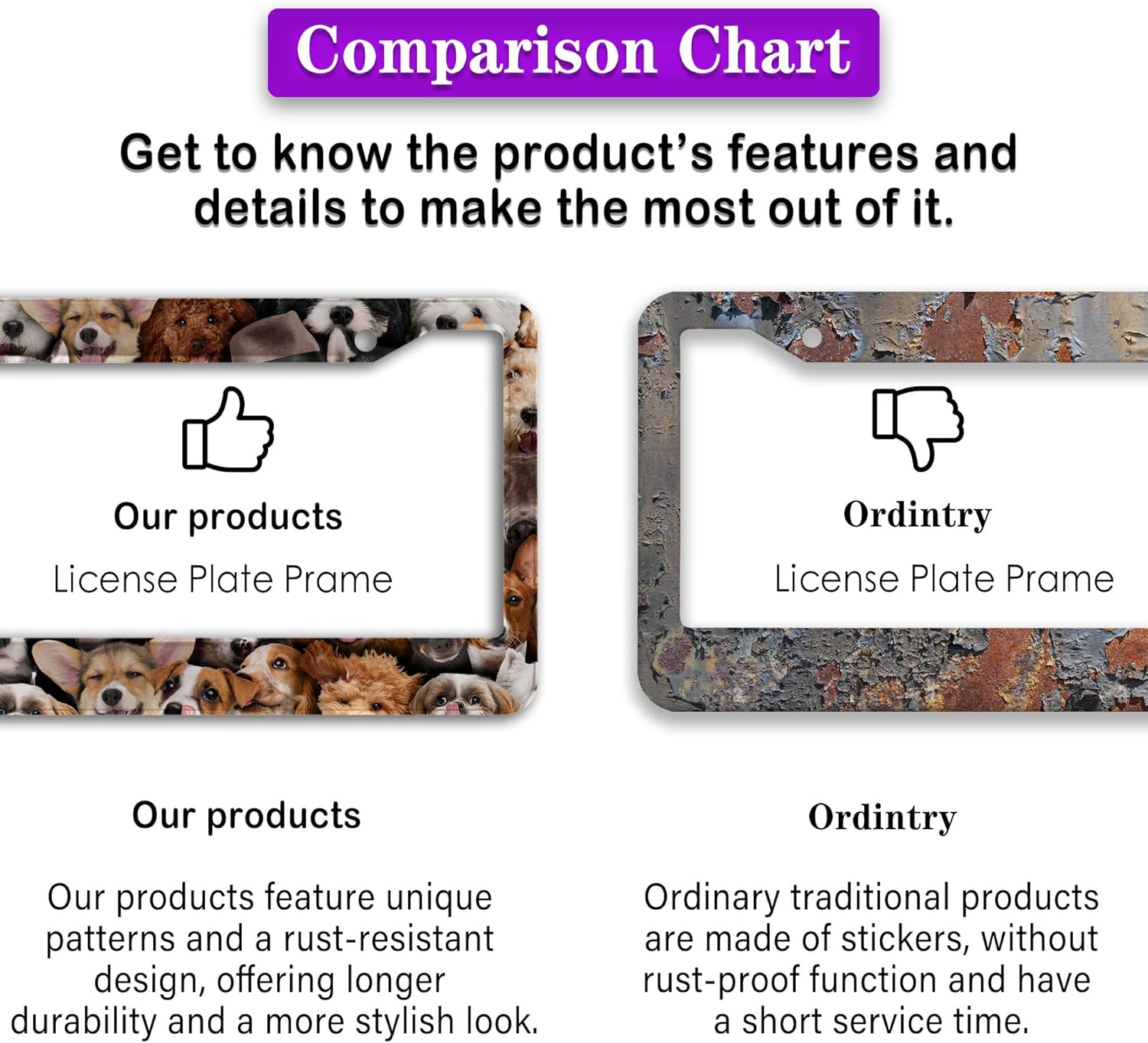 - FUNNY DESIGN: Featuring a unique and customized design, this license plate frame creates an eye-catching and bold statement for your vehicle. Not only does it add a touch of personality to your car, but it also makes for a great holiday gift, souvenir, or decorative piece for family, friends, and colleagues. Elevate your vehicle's style while sharing a laugh!