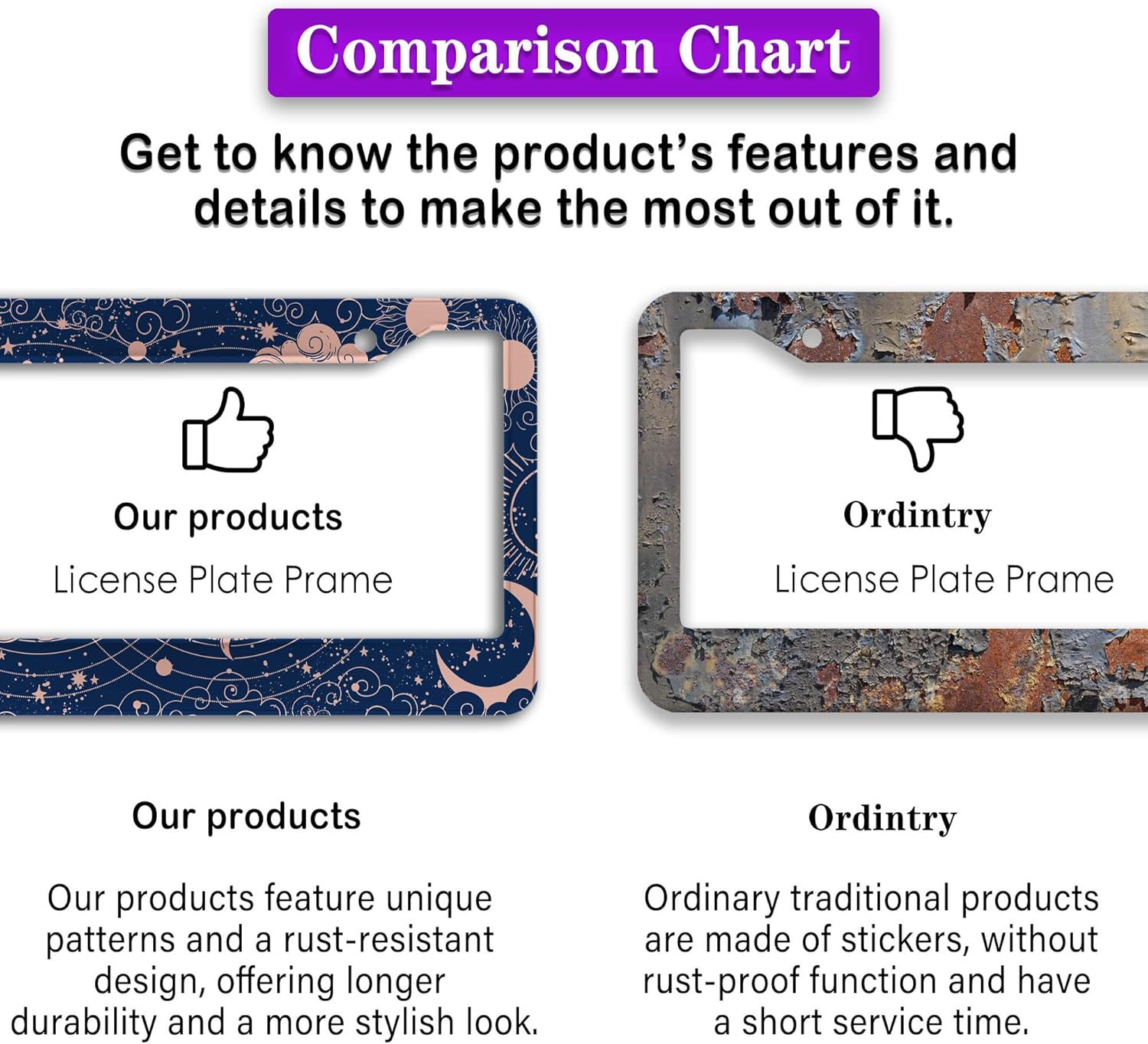 License Plate Frames for Women Blue License Plate Holder for Men Moon Sun Universal Aluminum Car Accessory 2 Pack with Screw Covers Set