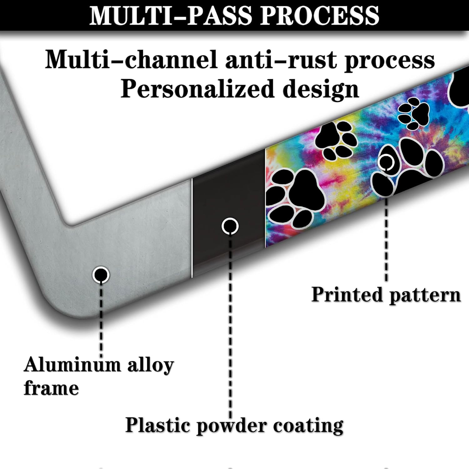 License Plate Cover for Men Multicolor License Plate Frames for Women Tie Dye Paw Print Aluminum Metal Car Accessory 2 Pack with Screw Covers Set