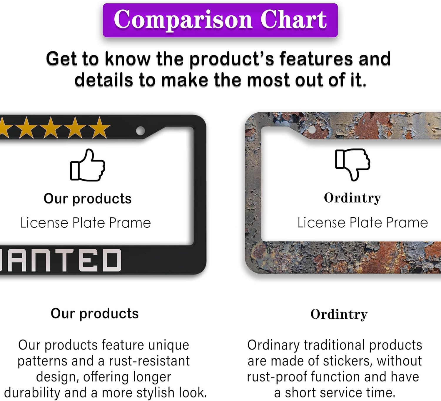- FUNNY DESIGN: Featuring a unique and customized design, this license plate frame creates an eye-catching and bold statement for your vehicle. Not only does it add a touch of personality to your car, but it also makes for a great holiday gift, souvenir, or decorative piece for family, friends, and colleagues. Elevate your vehicle's style while sharing a laugh!