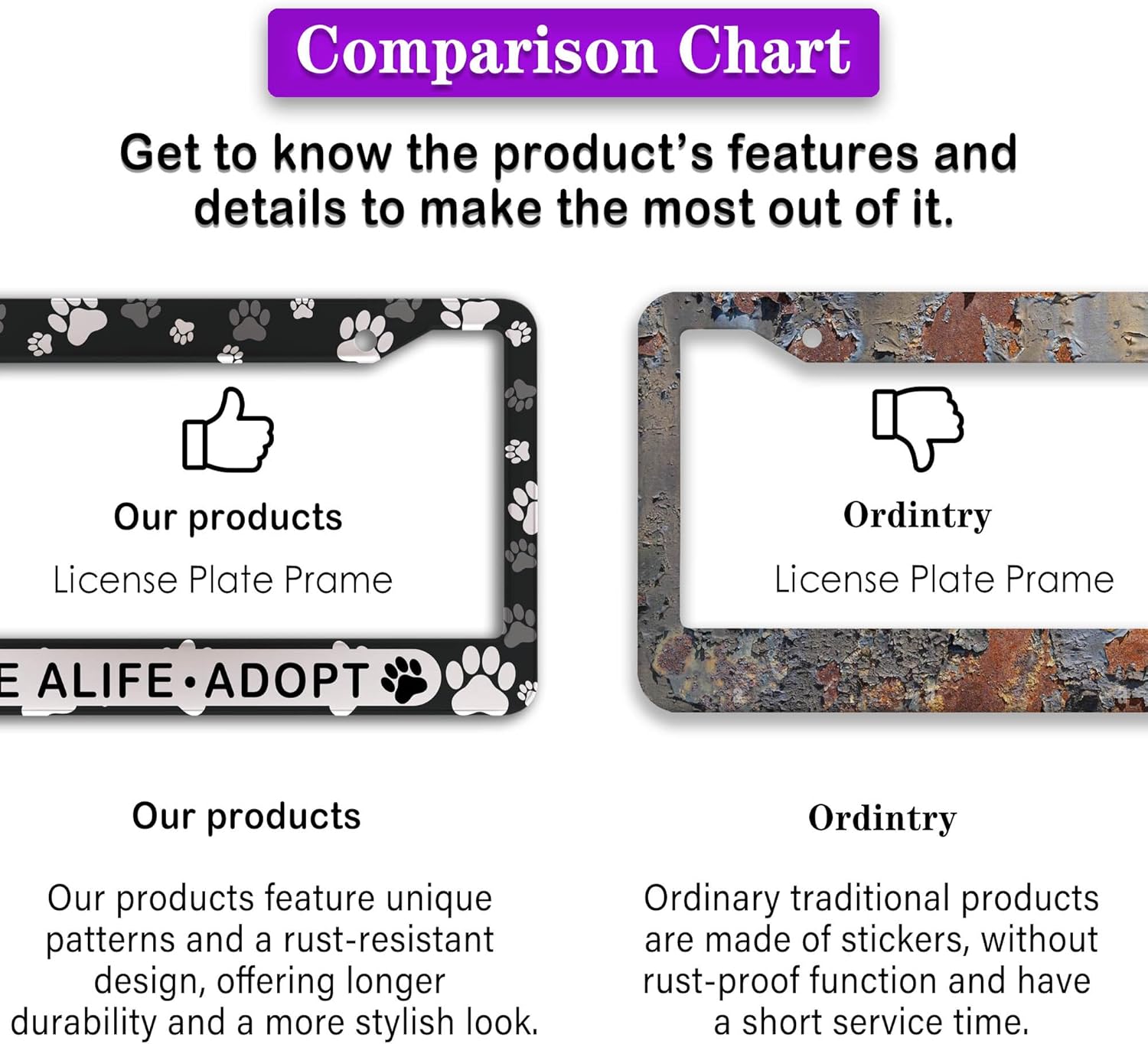 License Plate Holder Black and White License Plate Frames Save a Life Adopt Aluminum Metal Car Accessory 2 Pack with Screw Covers Set