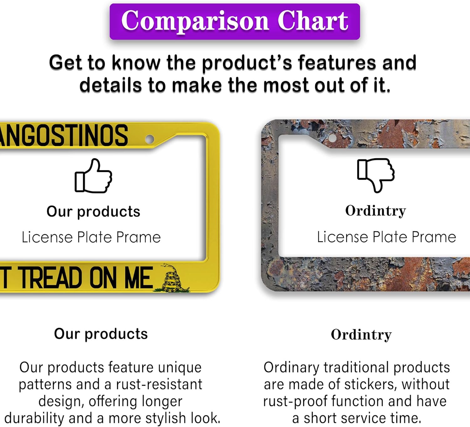 License Plate Cover Yellow Black License Plate Frames Langostinos Don’t Tread on Me Universal Aluminum Car Accessory 2 Pack with Screw Covers Set