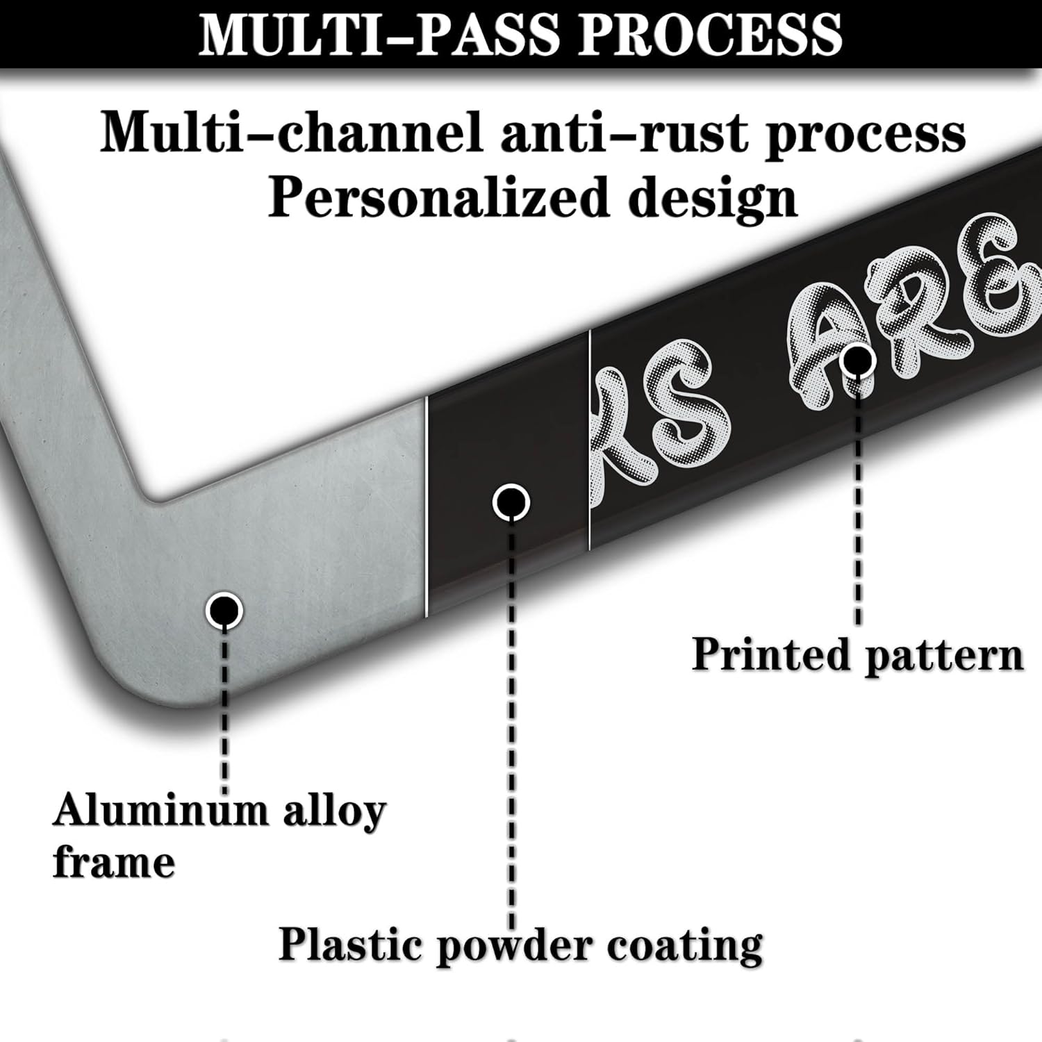 - FUNNY DESIGN: Featuring a unique and customized design, this license plate frame creates an eye-catching and bold statement for your vehicle. Not only does it add a touch of personality to your car, but it also makes for a great holiday gift, souvenir, or decorative piece for family, friends, and colleagues. Elevate your vehicle's style while sharing a laugh!