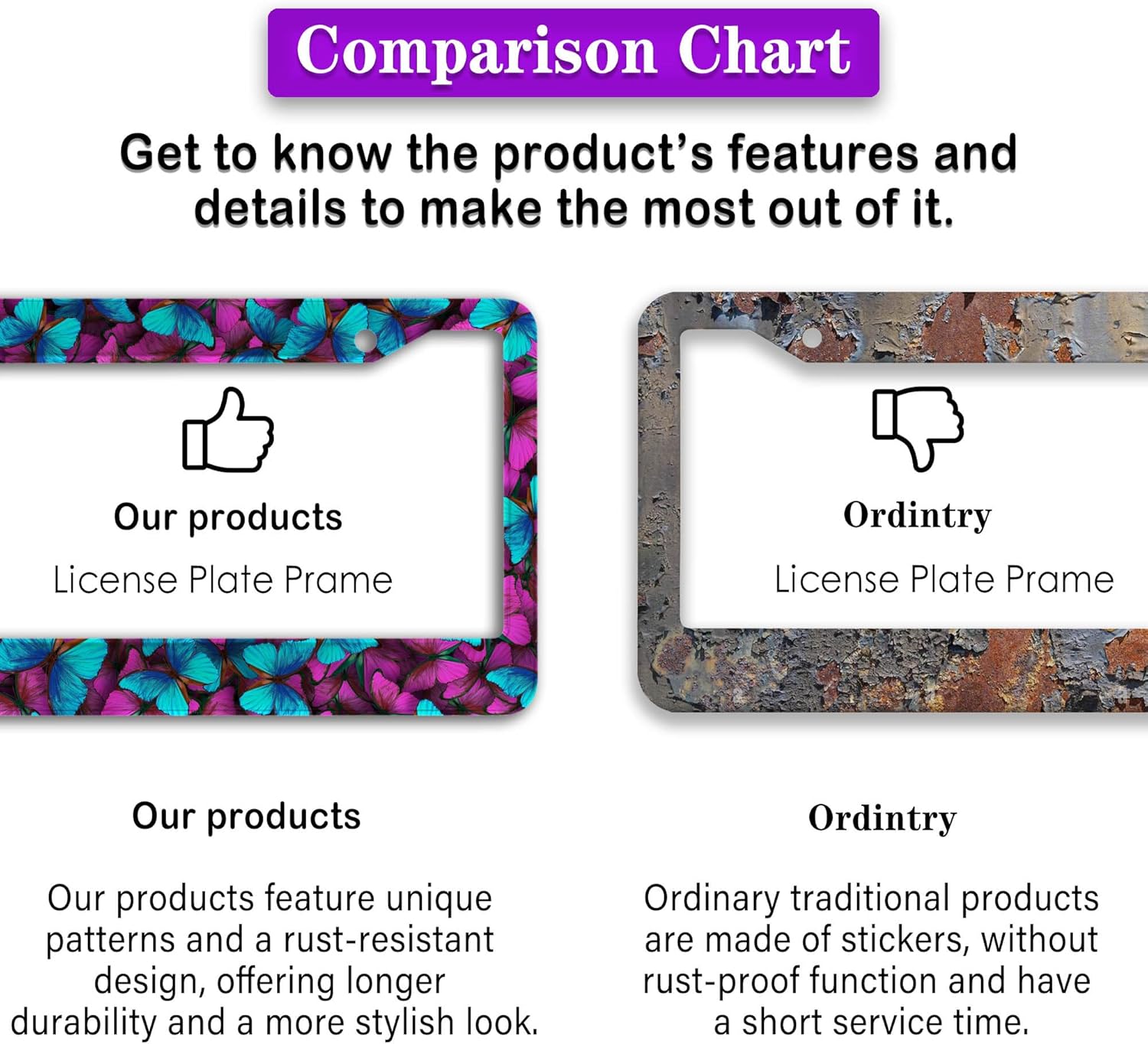License Plate Frames Multicolor Car Plate Frame for Women Blue Purple Butterfly Women Universal Aluminum Car Accessory 2 Pack with Screw Covers Set