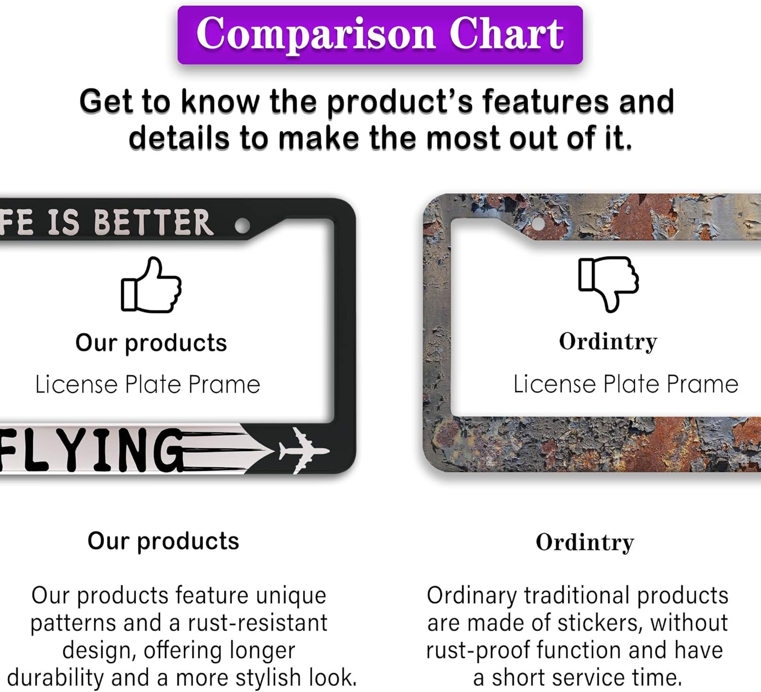- FUNNY DESIGN: Featuring a unique and customized design, this license plate frame creates an eye-catching and bold statement for your vehicle. Not only does it add a touch of personality to your car, but it also makes for a great holiday gift, souvenir, or decorative piece for family, friends, and colleagues. Elevate your vehicle's style while sharing a laugh!