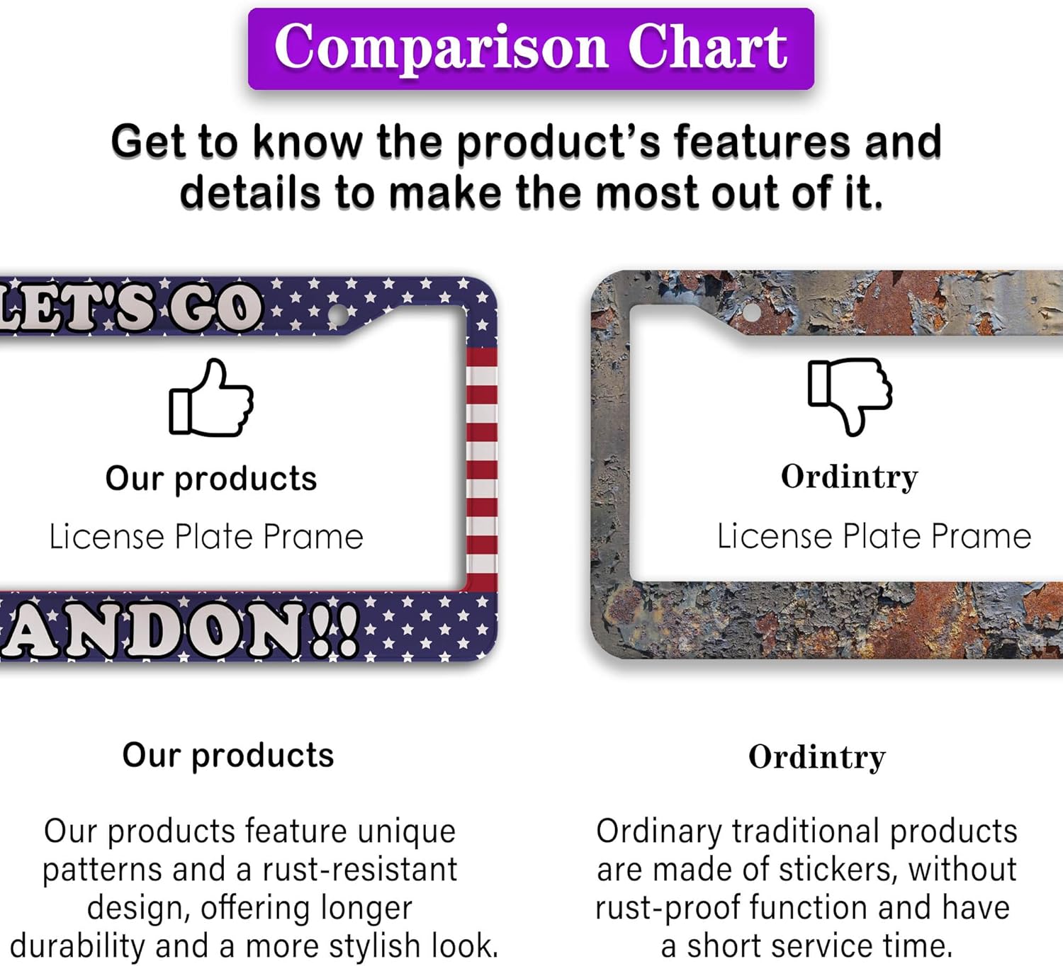 - FUNNY DESIGN: Featuring a unique and customized design, this license plate frame creates an eye-catching and bold statement for your vehicle. Not only does it add a touch of personality to your car, but it also makes for a great holiday gift, souvenir, or decorative piece for family, friends, and colleagues. Elevate your vehicle's style while sharing a laugh!