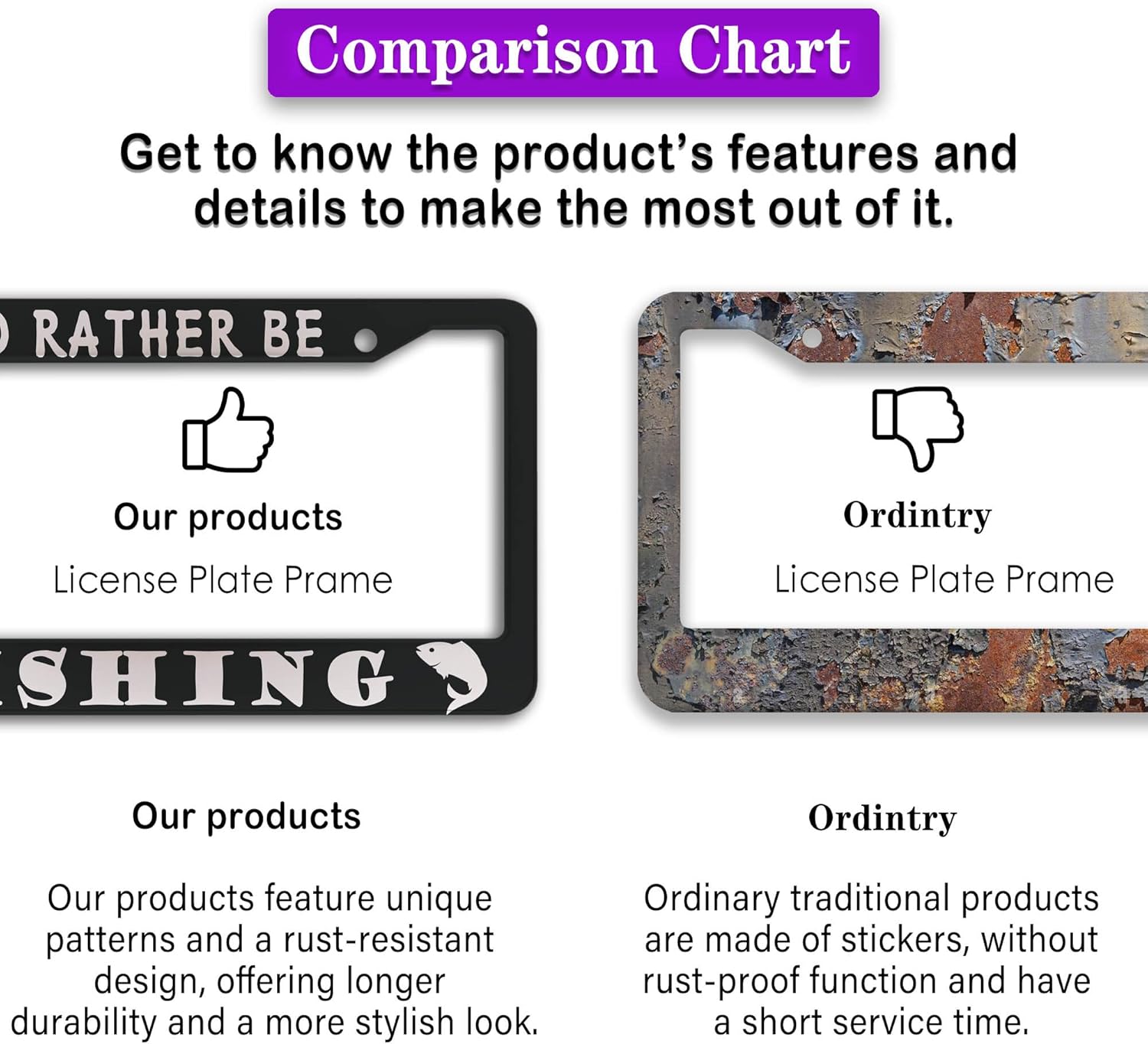 - FUNNY DESIGN: Featuring a unique and customized design, this license plate frame creates an eye-catching and bold statement for your vehicle. Not only does it add a touch of personality to your car, but it also makes for a great holiday gift, souvenir, or decorative piece for family, friends, and colleagues. Elevate your vehicle's style while sharing a laugh!