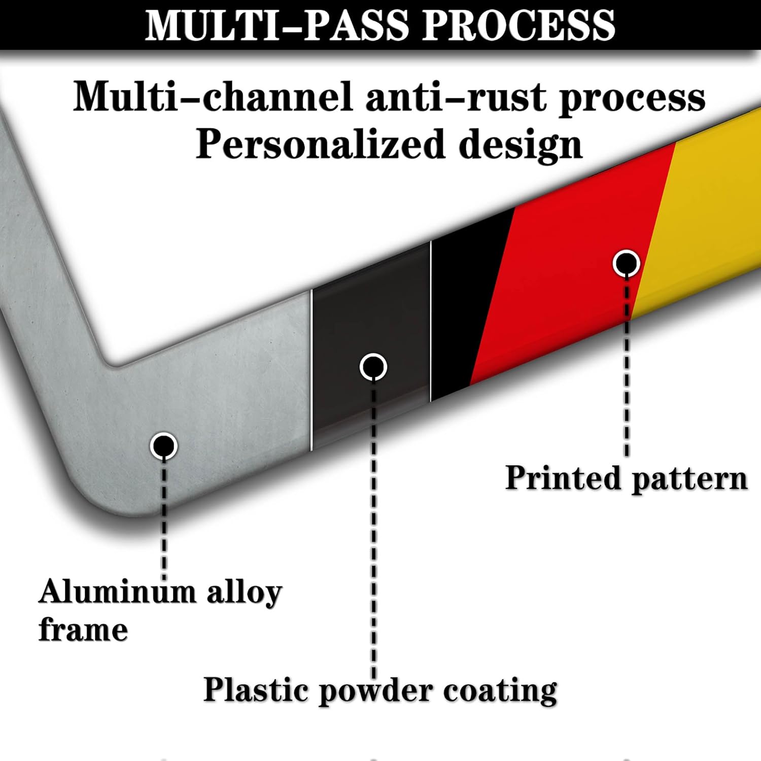 License Plate Protector Black, Yellow, and Red License Plate Frames German Flag Aluminum Metal Car Accessory 2 Pack with Screw Covers Set