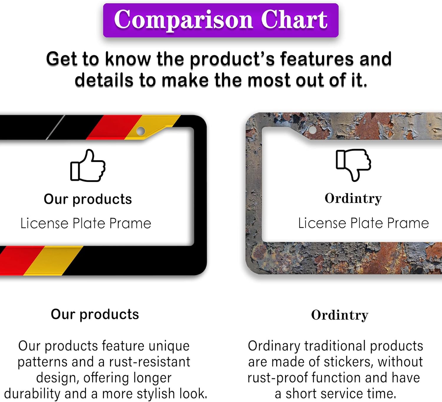 - ALUMINUM FRAME: This License Plate Frame is crafted from high-quality aluminum that is resistant to corrosion, rust, and harsh weather conditions. Its rugged reliability design ensures a long lifespan, making it capable of withstanding car washes and extreme weather, providing you with a reliable and stylish solution for your vehicle.